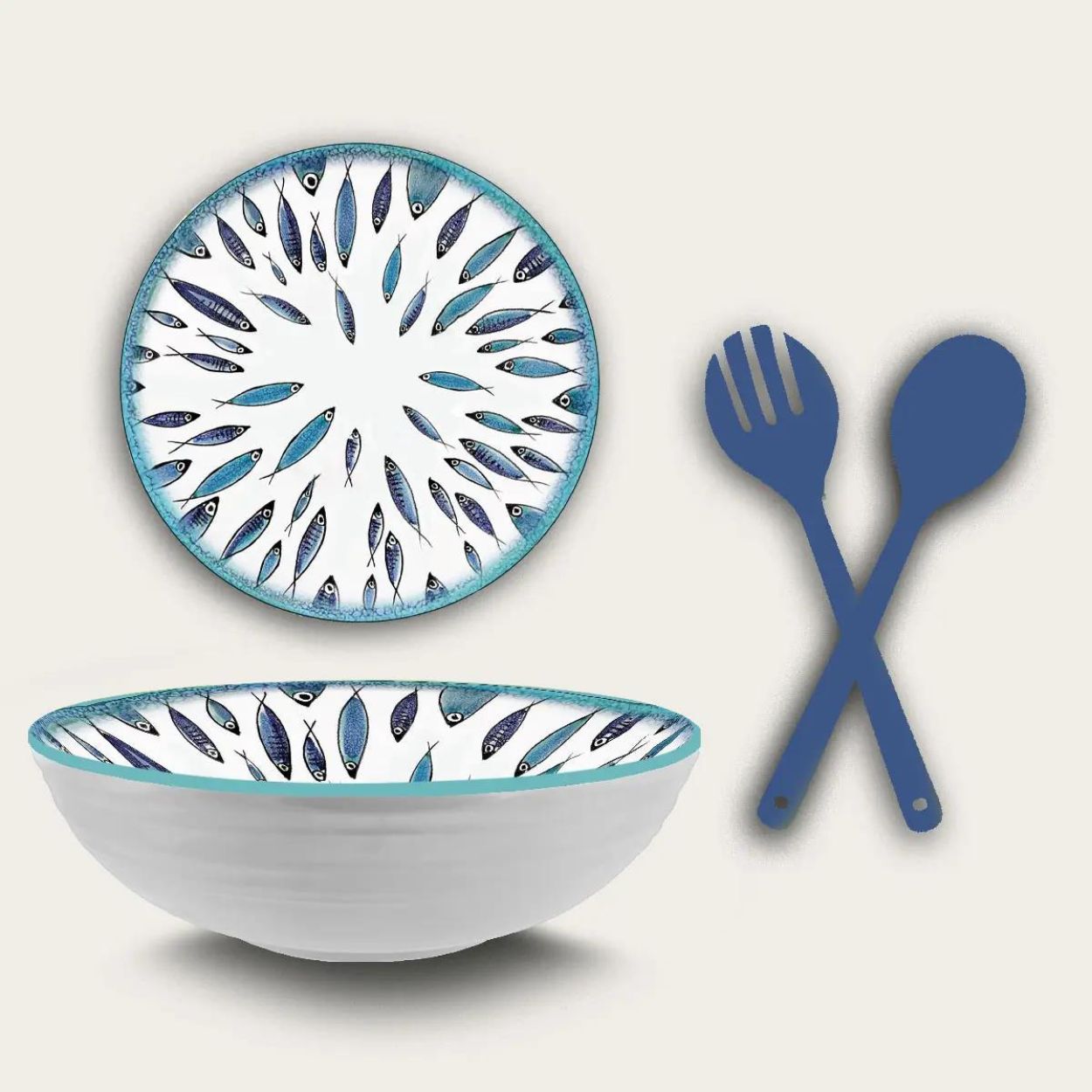 Arca Italy Saladier Fish avec couverts à salade Ø28cm – mélamine |
