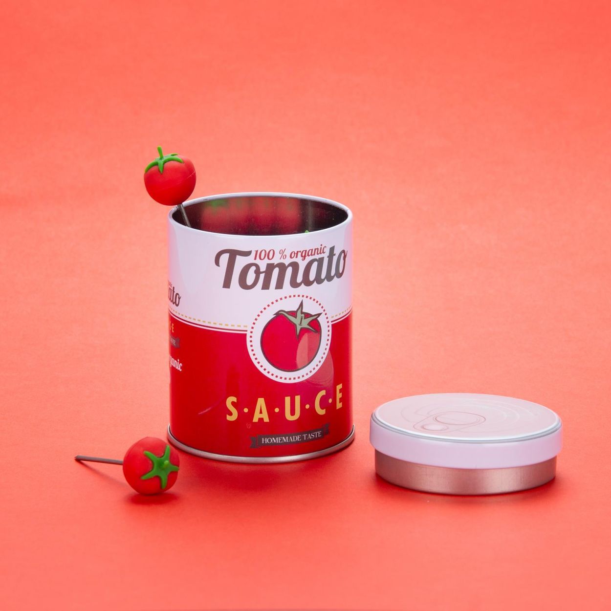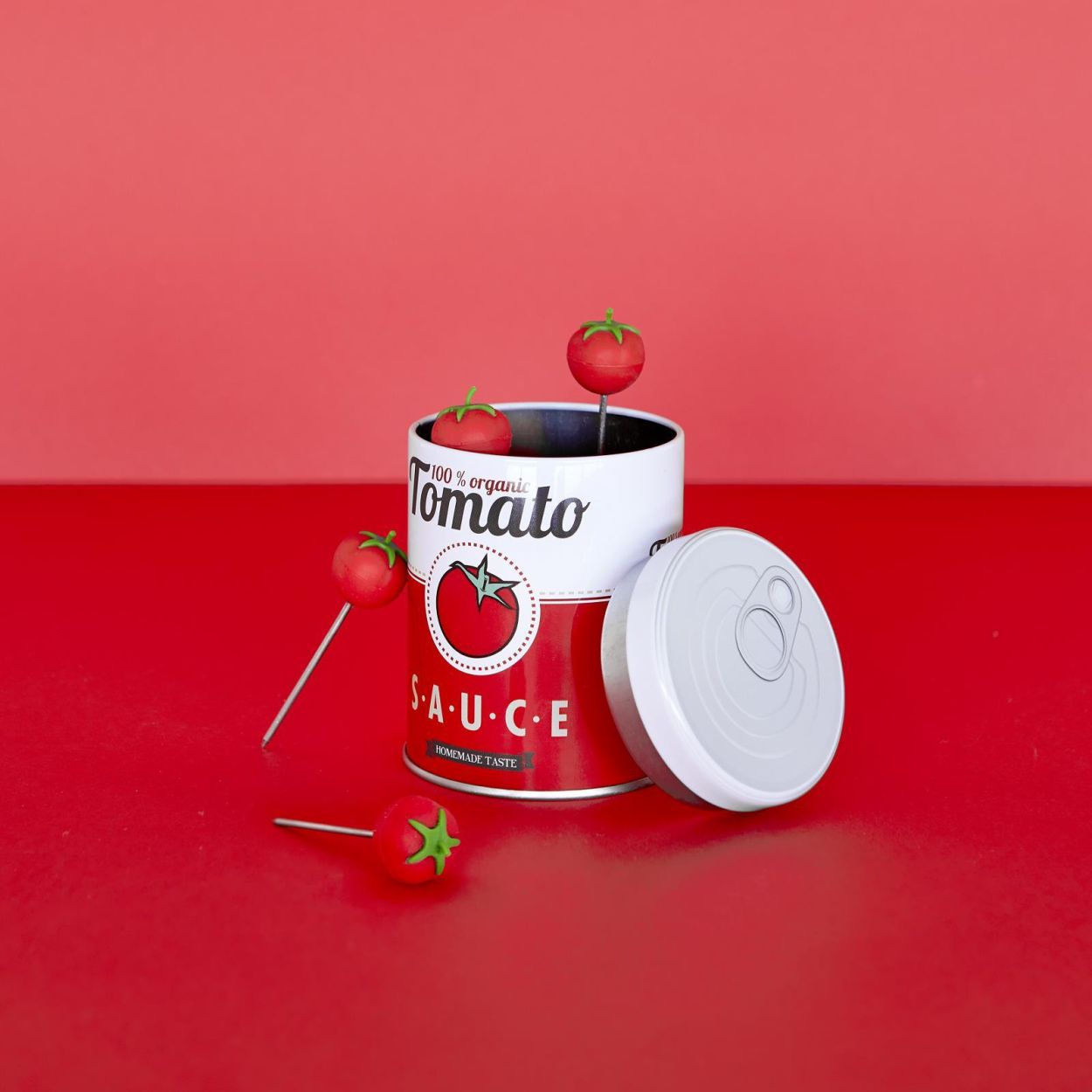 Six jolis piques décorés d’une petite tomate sur le dessus, présentés dans une boîte rétro. Idéals pour tapas, amuse-bouches ou desserts. Réutilisables, compatibles lave-vaisselle et un vrai clin d’œil déco sur la table. Un cadeau original pour les amateurs de pop art et de style vintage.
