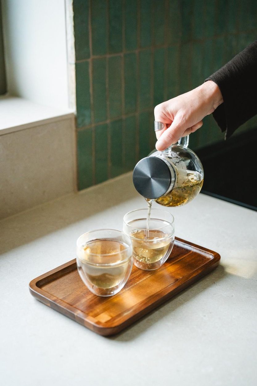 Le filtre intégré retient les feuilles lors du service, pour une infusion claire et maîtrisée. Le verre double paroi conserve la chaleur plus longtemps tout en gardant une surface extérieure tempérée.