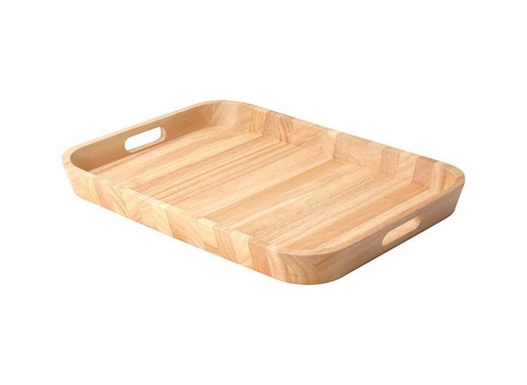 Ce plateau en bois massif d’hévéa est usiné dans un seul bloc, avec un fond et un rebord formant un ensemble homogène. Cela garantit une grande solidité et une finition élégante. Le rebord élevé offre une protection supplémentaire lors du transport, tandis que les larges ouvertures intégrées assurent une prise en main confortable et sécurisée.
