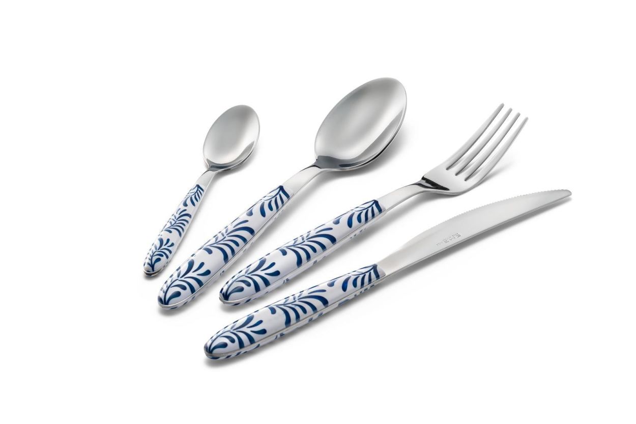 Le couteau de table Vero Mediterraneo associe un design moderne à une touche estivale. Son manche blanc décoré de feuilles bleues est imprimé par sublimation, offrant des couleurs durables et résistantes aux rayures.