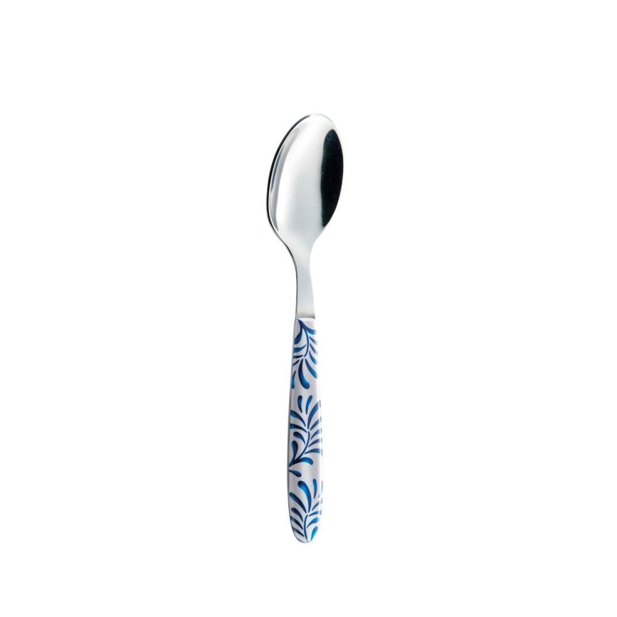 La cuillère de table Vero Mediterraneo associe un design moderne à une touche estivale. Son manche blanc décoré de feuilles bleues est imprimé par sublimation, offrant des couleurs durables et résistantes aux rayures.