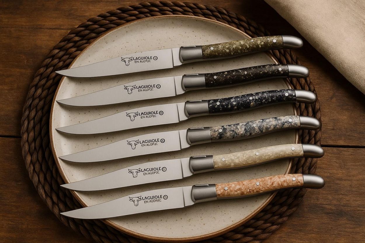 Avec une histoire remontant à 1829, Laguiole en Aubrac fait partie des derniers ateliers où les couteaux sont encore réalisés de A à Z. Selon le modèle, la fabrication nécessite 109 à 216 opérations manuelles. Le guillochage réalisé à la main, les finitions minutieuses et la signature personnelle de l’artisan transforment chaque couteau en une véritable œuvre d’art.