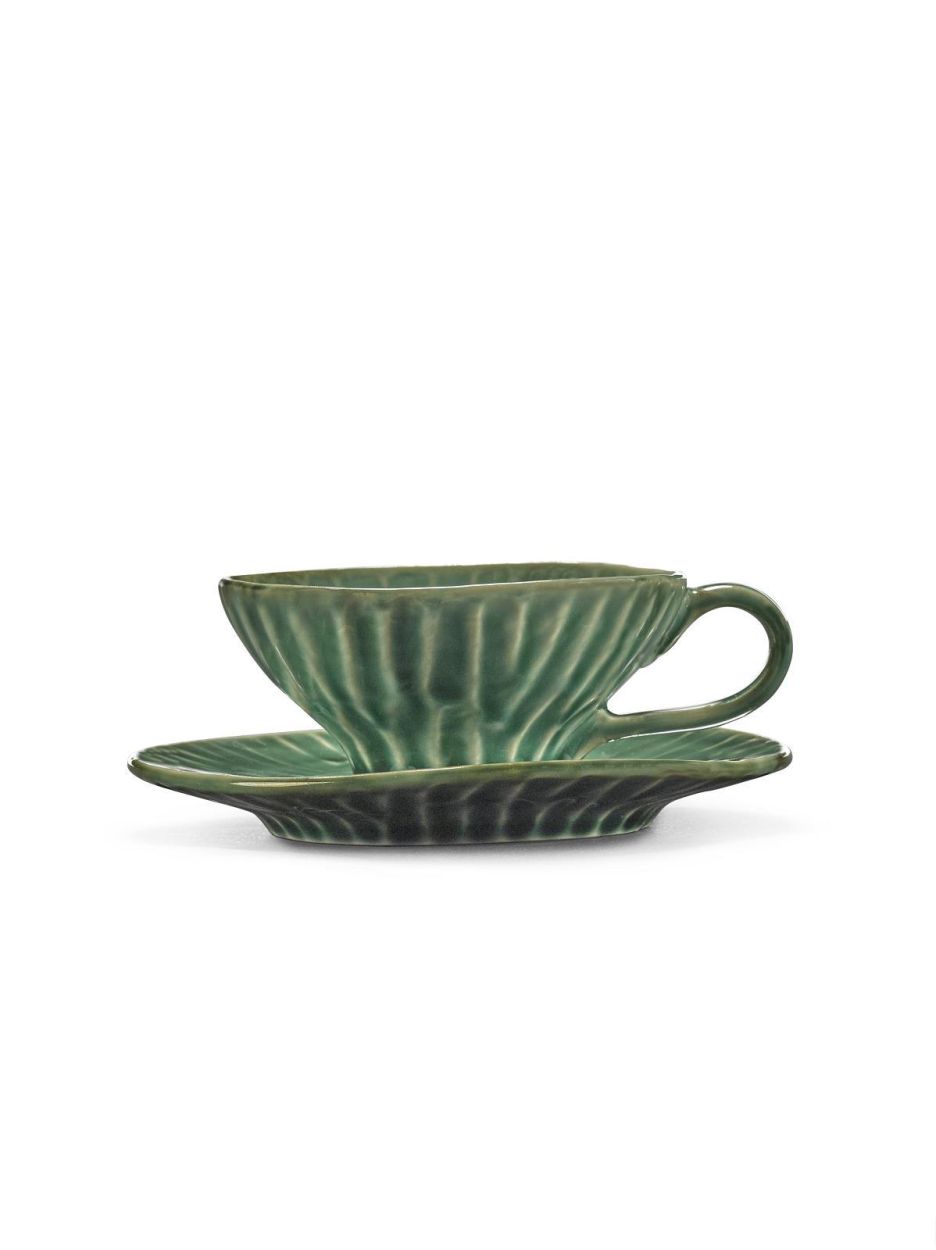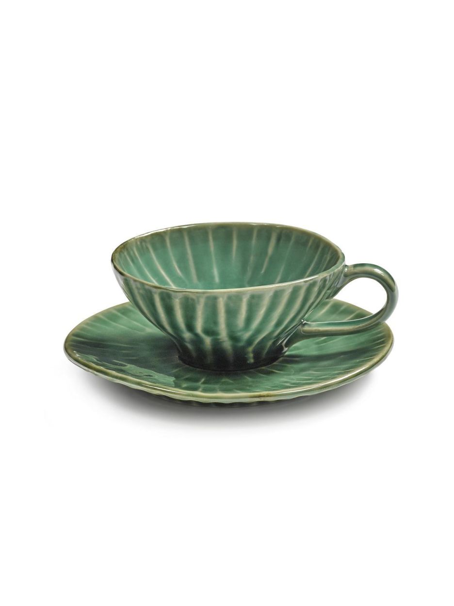 Pour sa dernière création, Pascale Naessens ne s’est pas seulement plongée dans son atelier de céramique, elle a également conçu sa propre collection de vaisselle : Verde Lanza, produite en exclusivité par Serax. Le nom fait référence à Lanzarote, l’île où Pascale séjourne souvent et puise son inspiration. Le vert profond et patiné des fenêtres, des portes en bois et de la végétation clairsemée contraste fortement avec le paysage volcanique sombre — une atmosphère qui se retrouve pleinement dans la vaisselle. Cette couleur, qui se marie parfaitement avec une grande variété de plats, est encore sublimée par la texture en forme de coquillage que Pascale a façonnée à la main. Authentique, sensorielle et baignée de soleil : du Pascale tout craché.