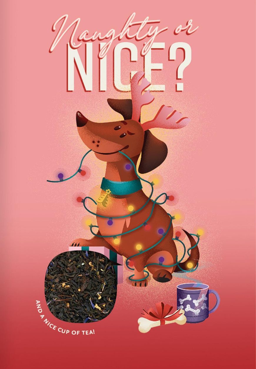 The Cabinet Of CuriosiTEAs Naughty or Nice Dog Tea Postcard |