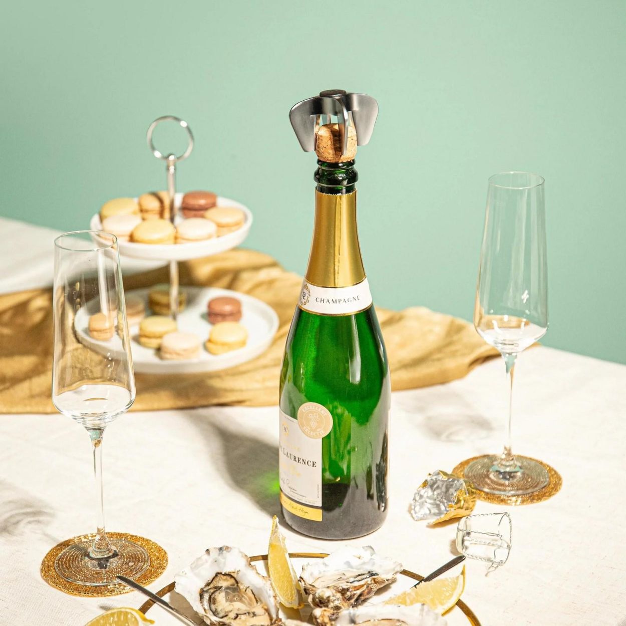 Avec cet ouvre-champagne compact, vous ouvrez les bouteilles de champagne et de vin mousseux facilement et en toute sécurité, sans que le bouchon ne saute.