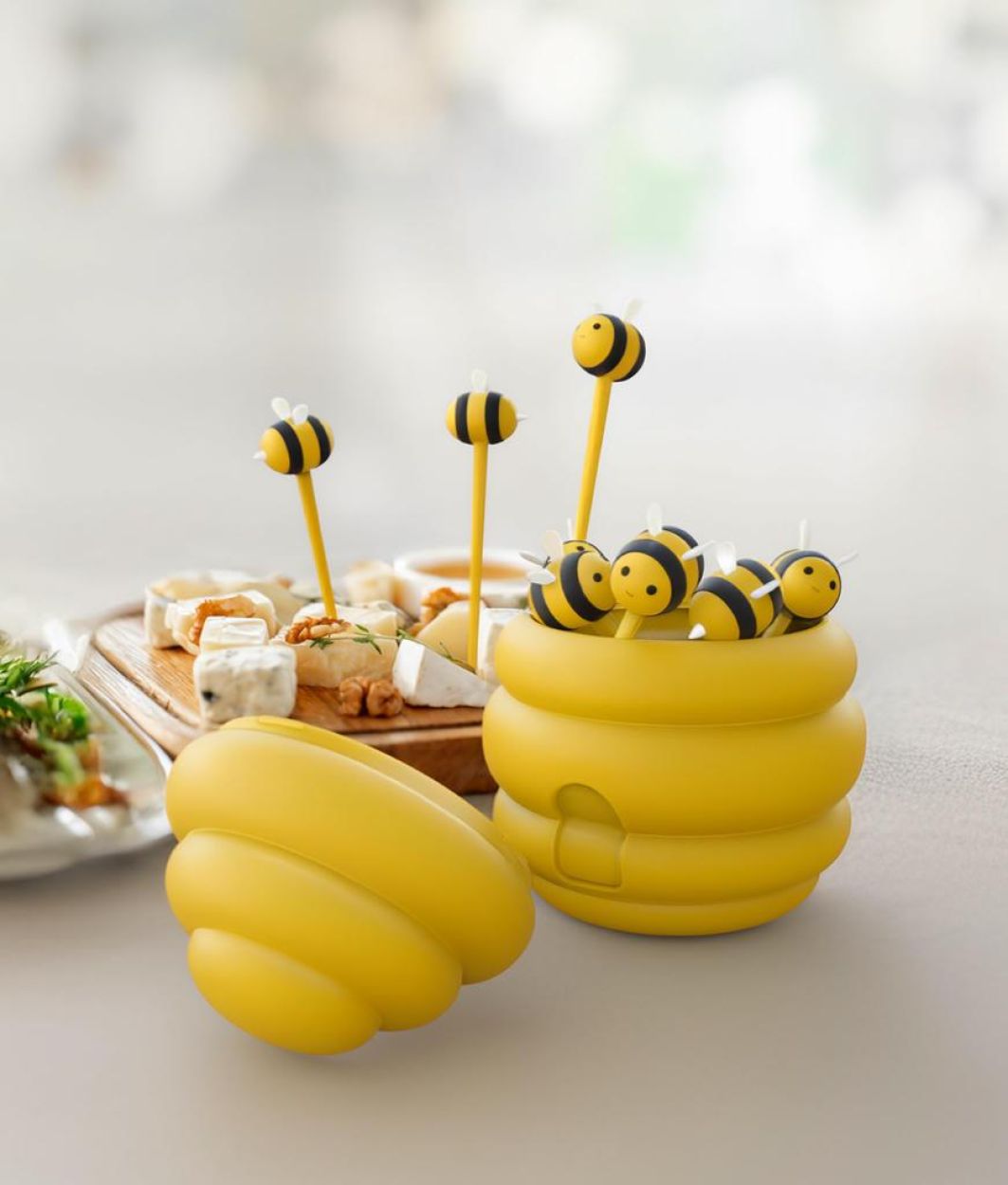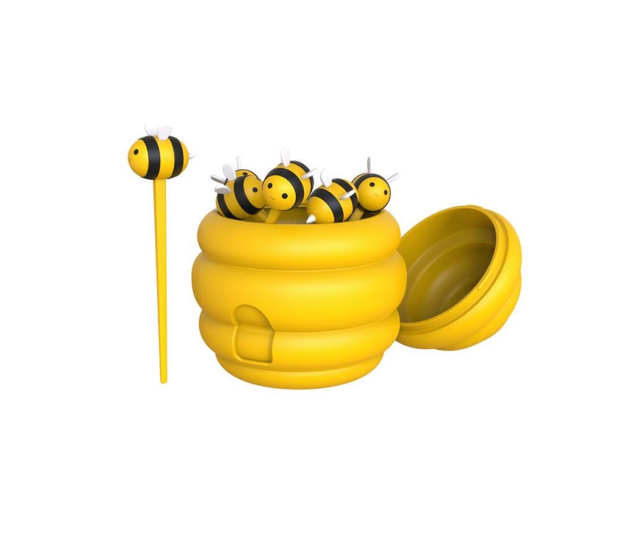 Bzz bzz, c’est l’heure de grignoter ! Ces six pics apéro sont rangés dans une boîte en forme de ruche. Pratique pour les garder ensemble et trop mignon sur la table.