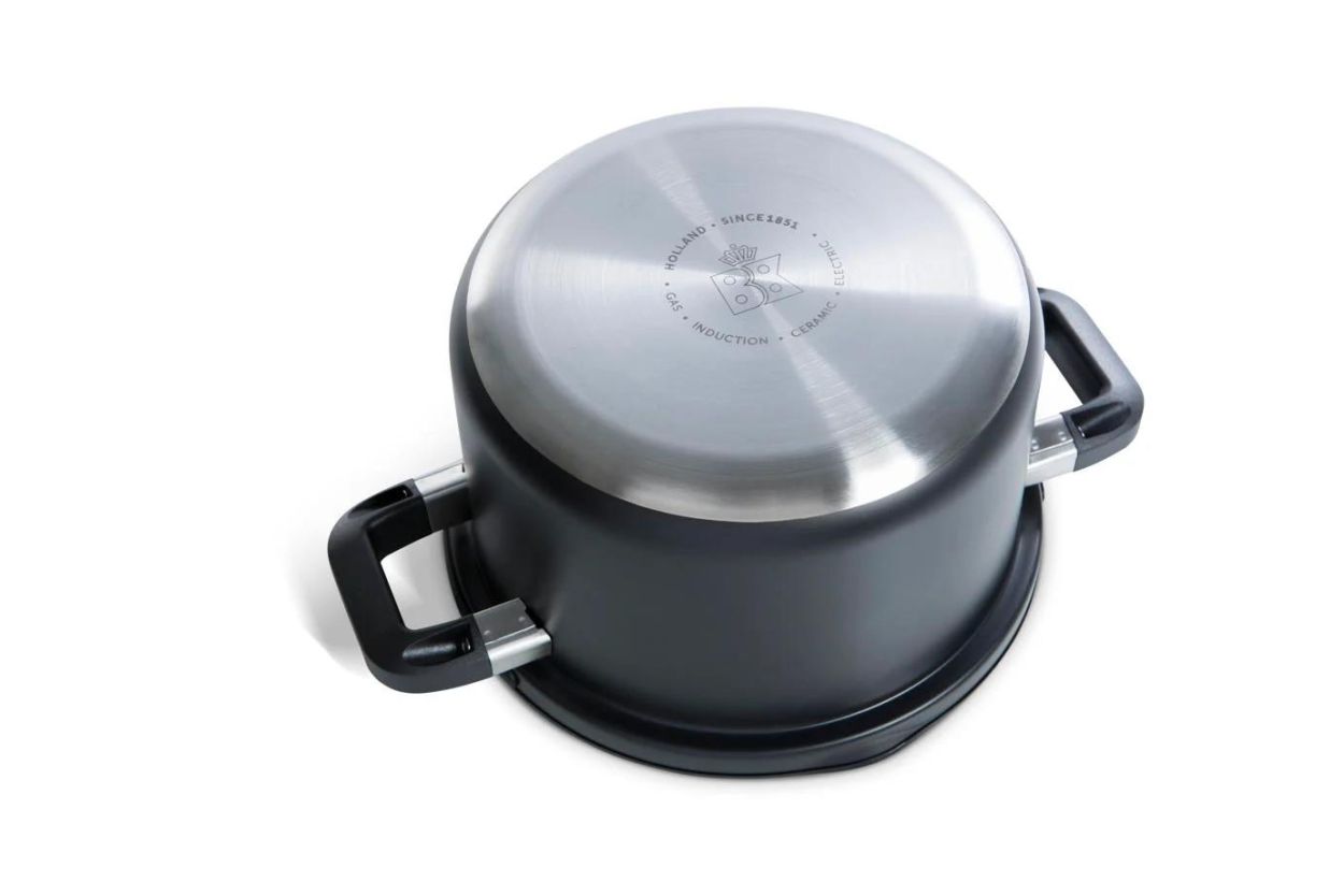 La marmite est fabriquée en acier inoxydable de haute qualité et possède un revêtement extérieur noir élégant. Les lignes fluides et la finition satinée lui donnent un look moderne et puissant qui s’intègre parfaitement dans toutes les cuisines. Les poignées froides assurent un confort et une sécurité supplémentaires pendant la cuisson.