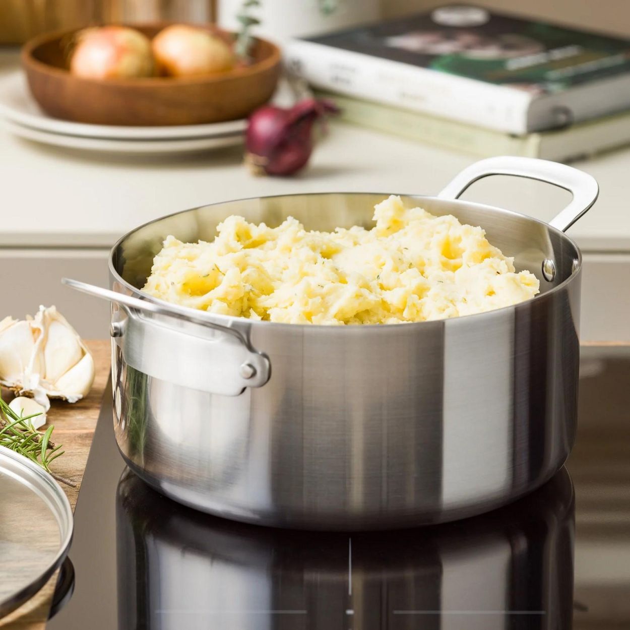 L’acier inoxydable est extrêmement polyvalent : cuisson, rôtissage, saisie, caramélisation, mijotage ou préparation de sauces – tout est possible. De plus, cette marmite est ultra résistante et conçue pour durer toute une vie. Son design minimaliste aux lignes épurées apporte une touche élégante à chaque cuisine.
