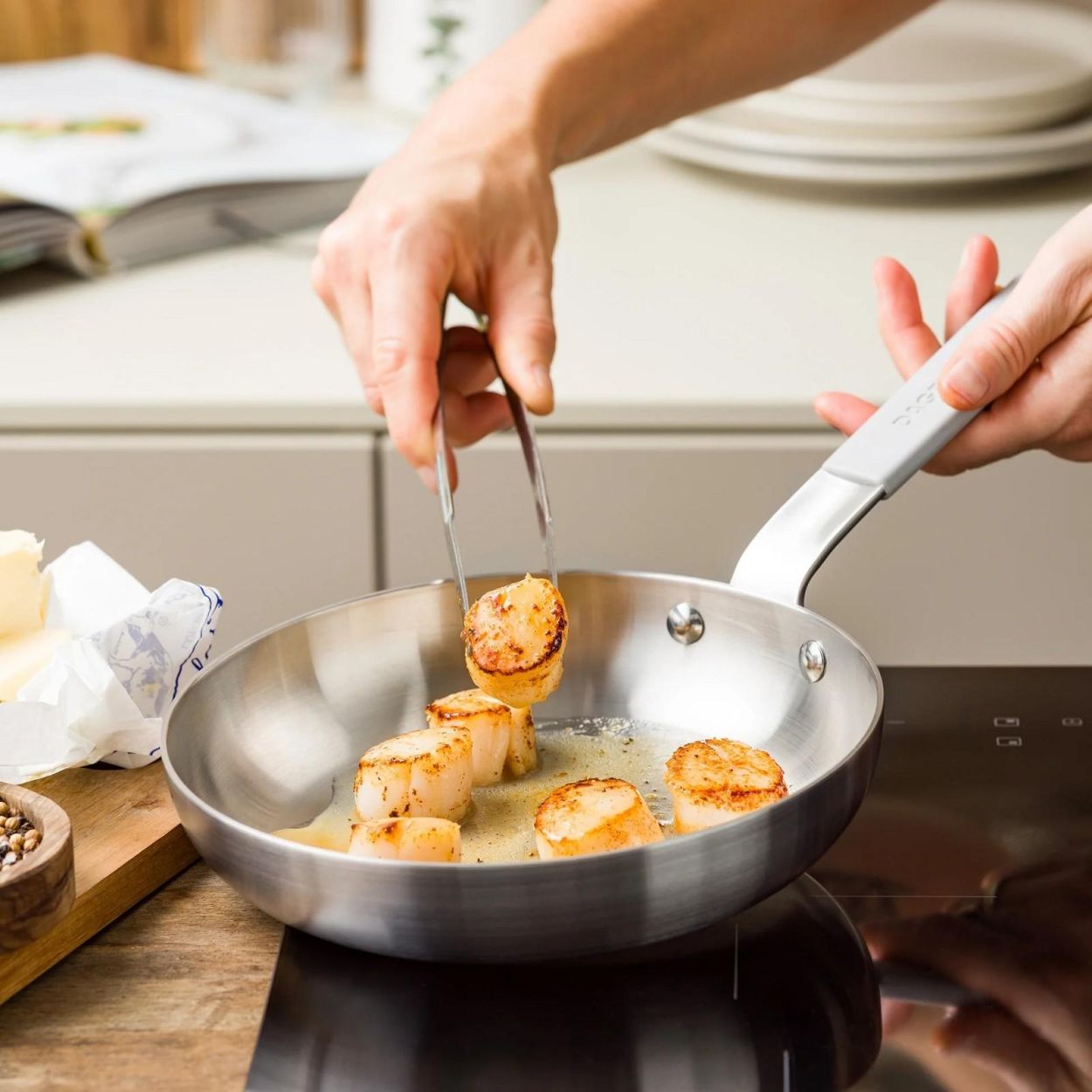 La poêle Proline 3PLY 20 cm de la collection Dagelijkse Kost est idéale pour les petites portions et les préparations rapides. La construction 3 couches en acier inoxydable avec noyau en aluminium assure une répartition parfaite de la chaleur et un contrôle précis de la température.