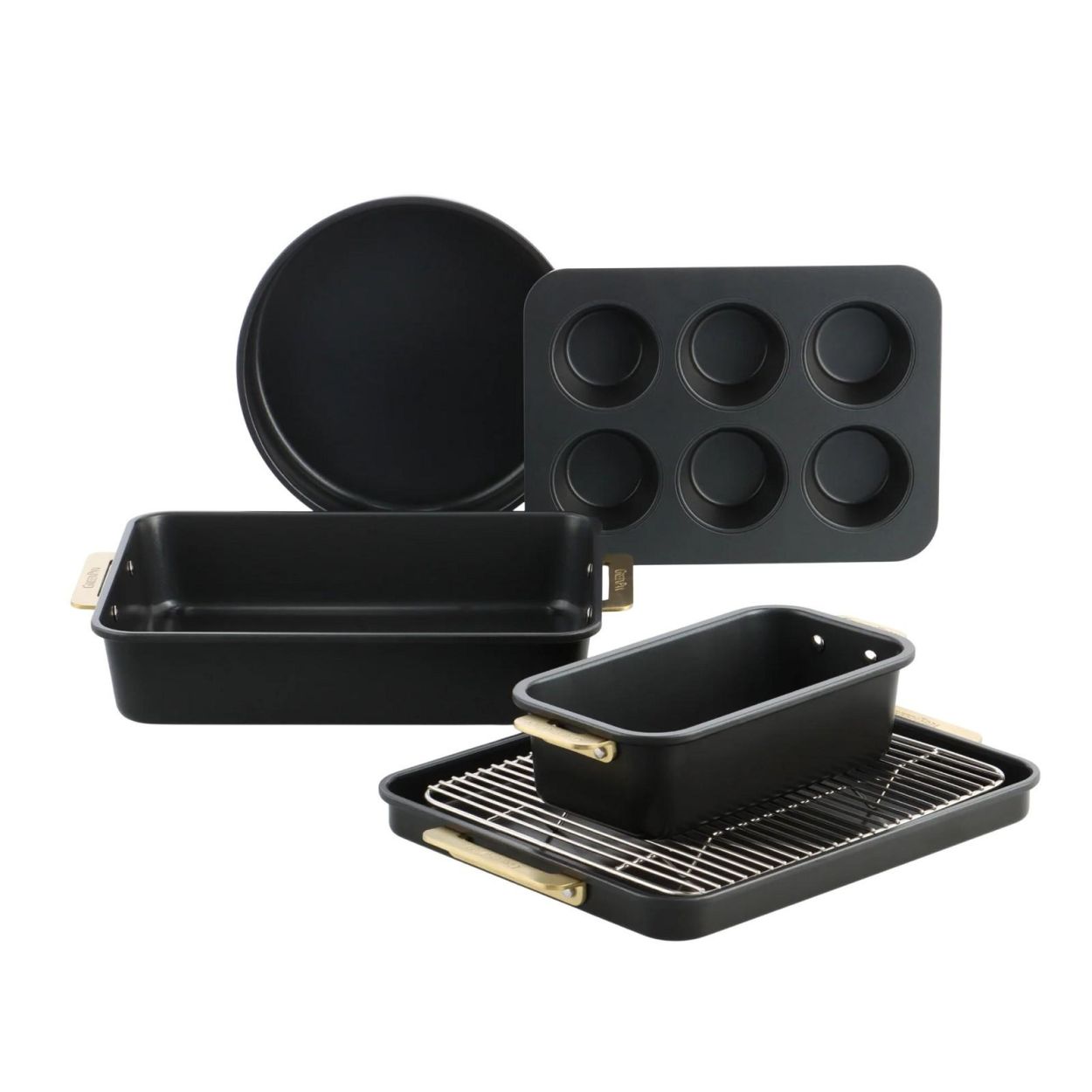 Les moules sont dotés d’un revêtement antiadhésif céramique avancé sans PFAS. Les préparations se démoulent facilement, la cuisson est uniforme et le nettoyage devient beaucoup plus simple. Les poignées dorées résistantes à l’usure apportent une touche luxueuse et offrent un confort d’utilisation supplémentaire.
