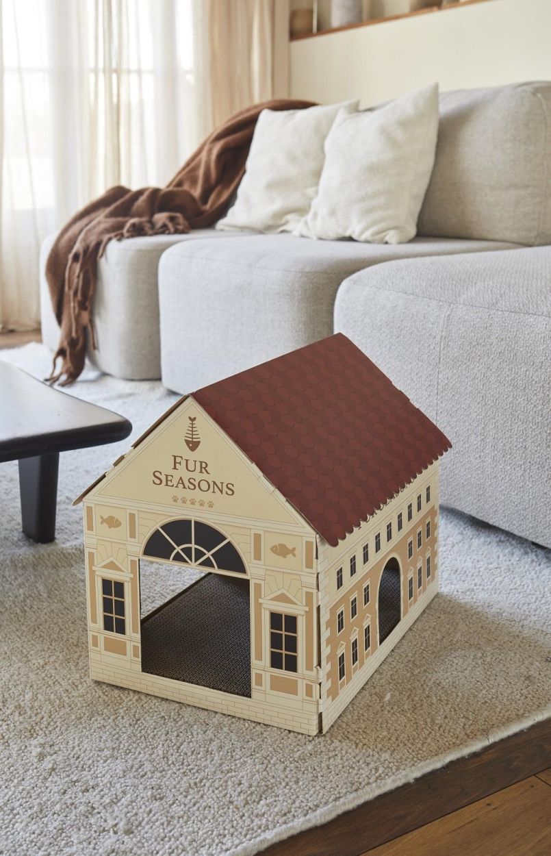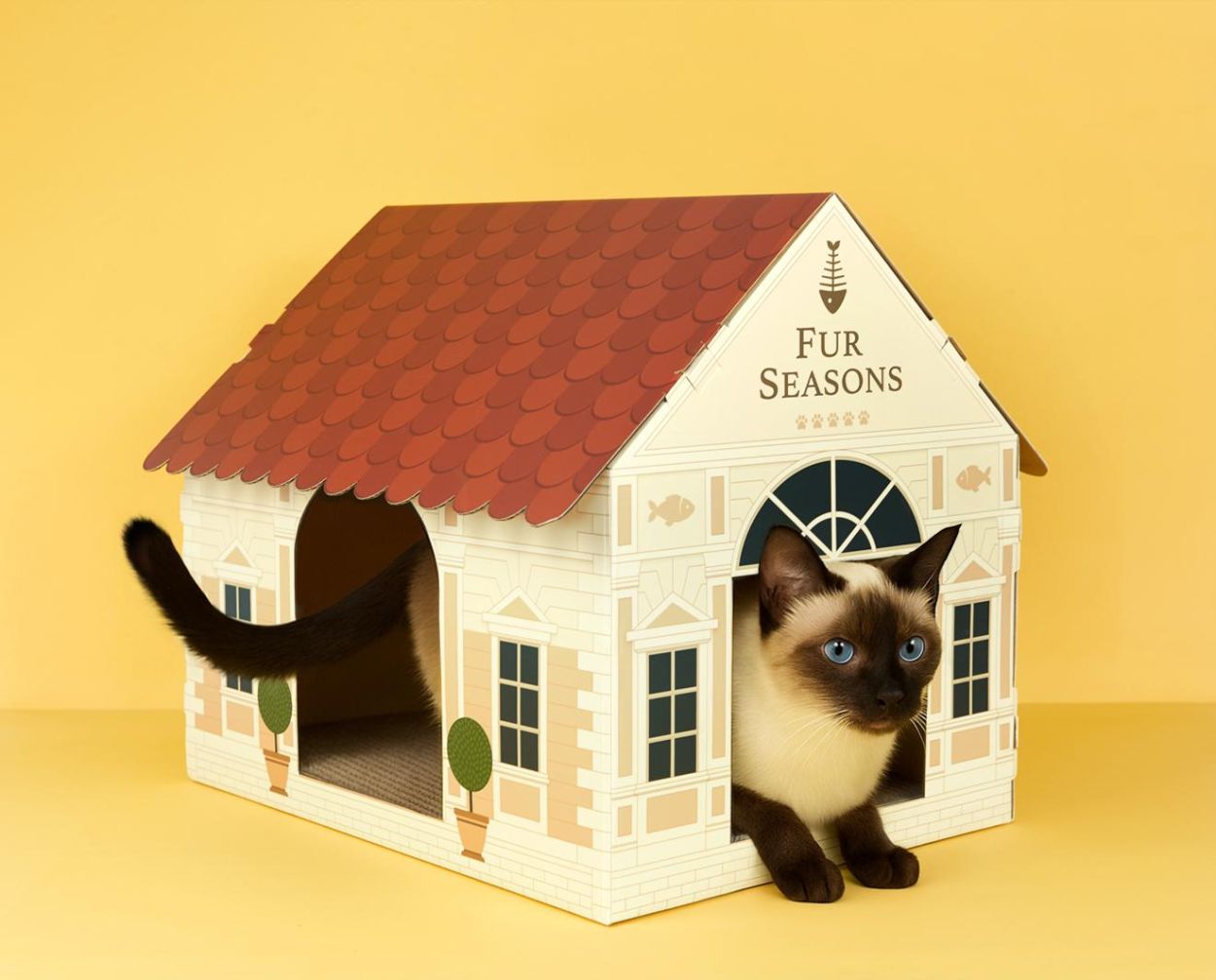 Offrez à votre chat son propre hôtel de luxe ! Cette maison pour chat originale avec griffoir intégré est idéale pour faire les griffes, libérer son énergie et protéger vos meubles. Facile à monter grâce à son design en carton pliable — ludique, pratique et décoratif.