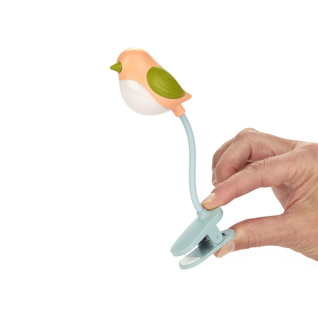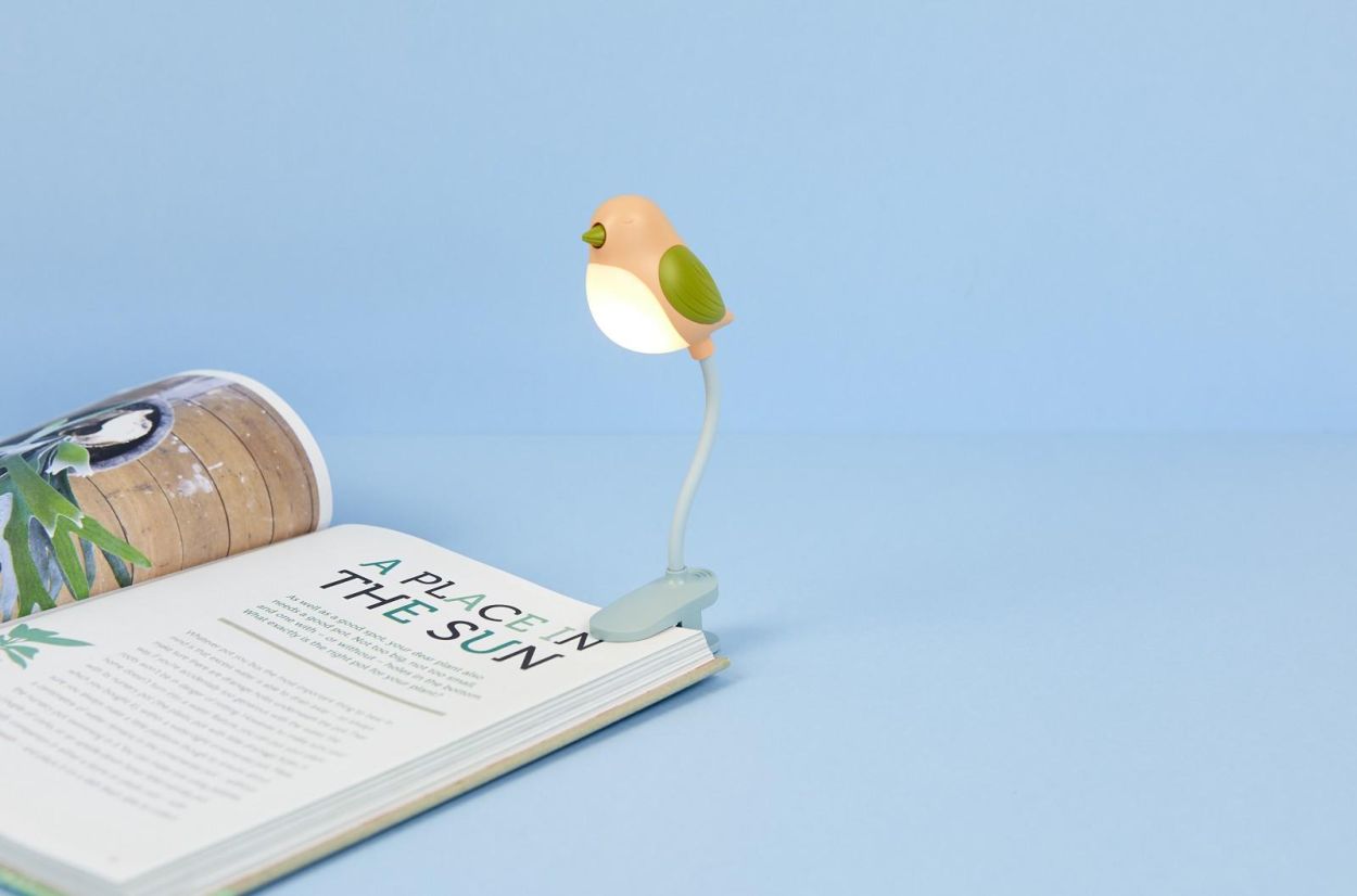 Ce petit oiseau éclaire vos moments de lecture ! Il suffit de presser doucement son bec pour allumer la lumière et lire le soir sans déranger les autres. Le clip antidérapant et le cou flexible s’adaptent facilement à tous les livres.