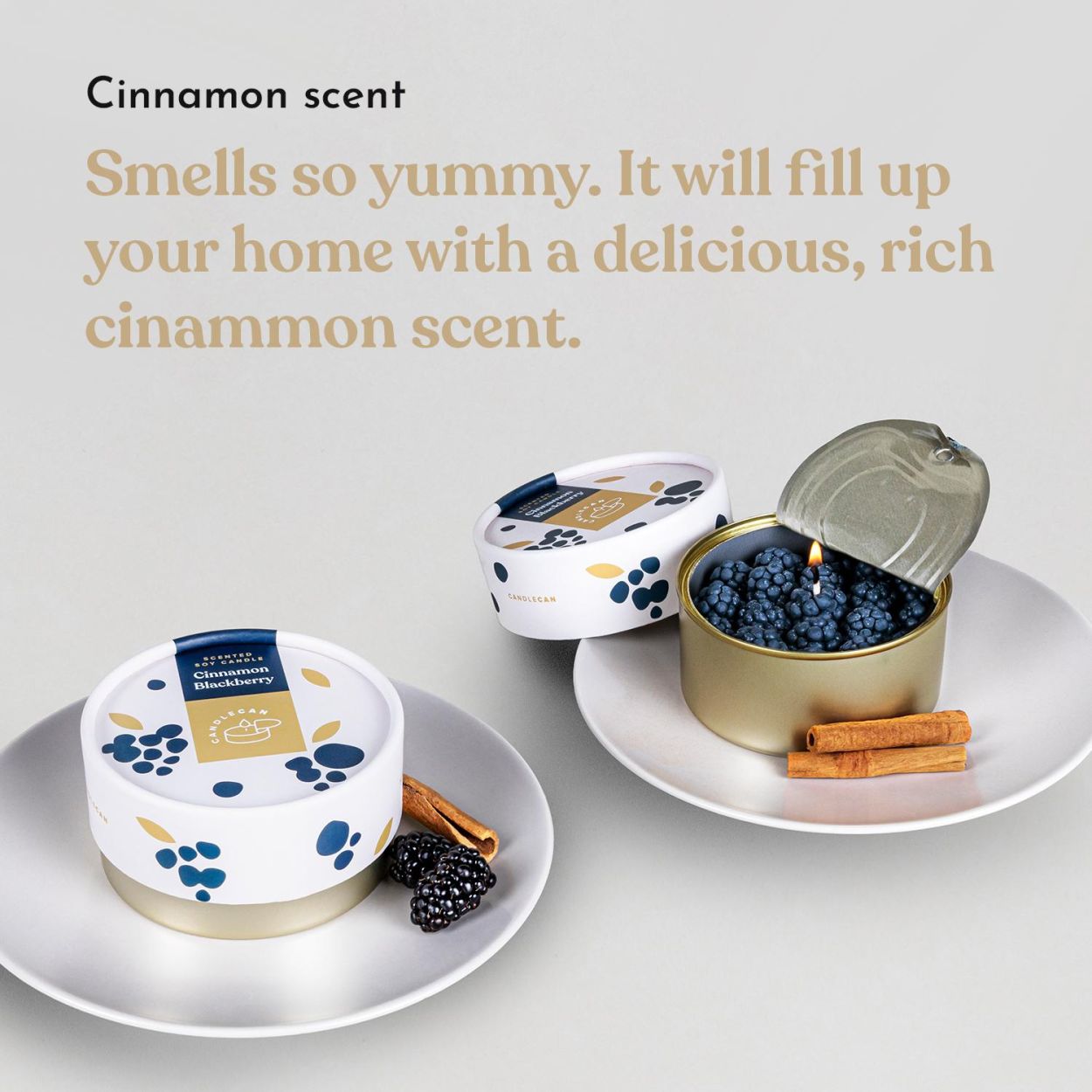 Les mûres sous une autre forme : cette bougie artisanale reprend l’aspect de mûres bien mûres et diffuse un parfum épicé de cannelle. Une combinaison originale qui apporte chaleur et convivialité. Réalisée en cire 100 % végétale avec une mèche en coton.