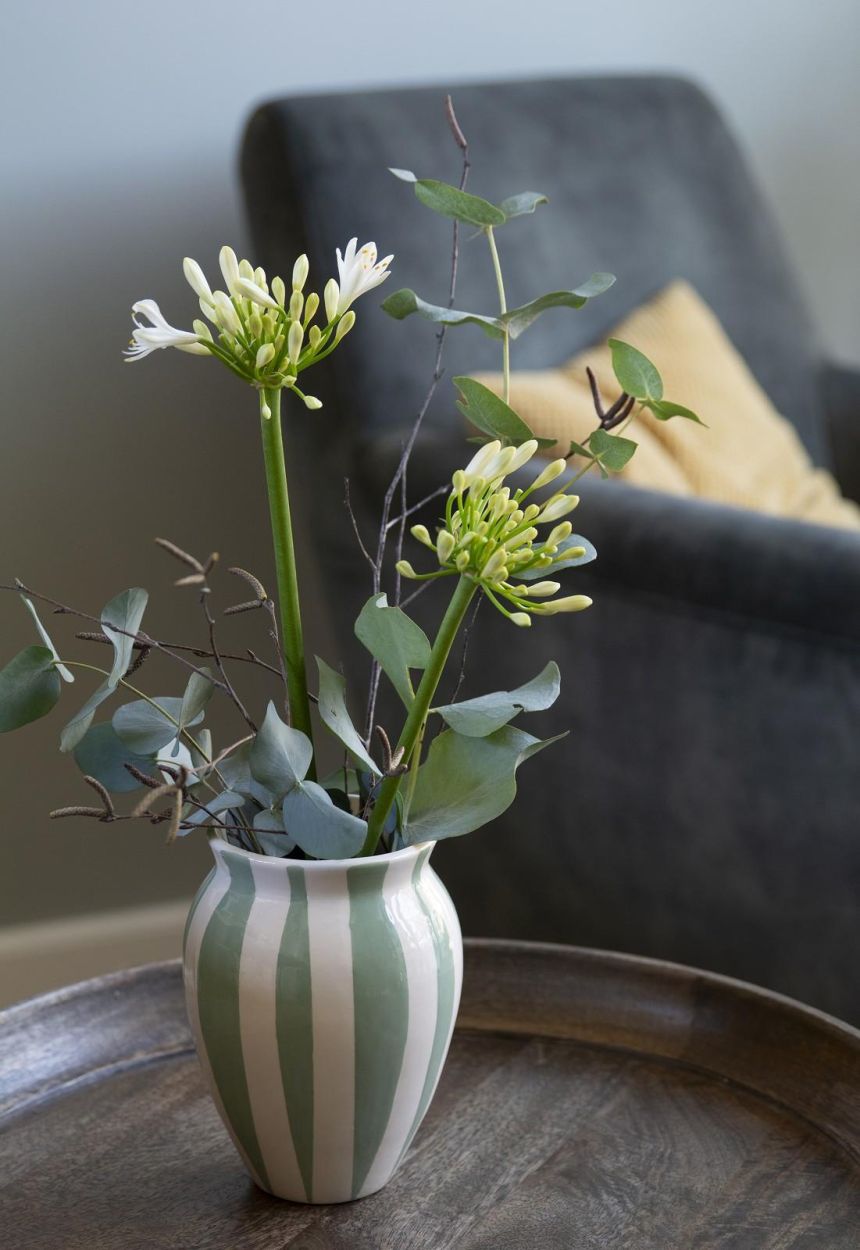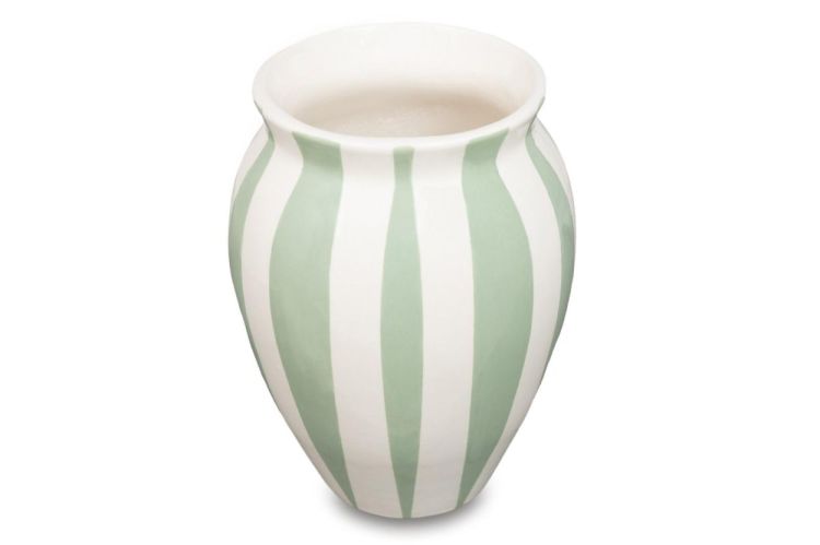 Ce joli vase à rayures apporte une touche de couleur et de charme à votre table ou à votre intérieur. Avec ses 17 cm de hauteur, il est parfait pour un petit bouquet ou une branche fleurie. Son format compact est idéal sur une table dressée sans gêner la vue.