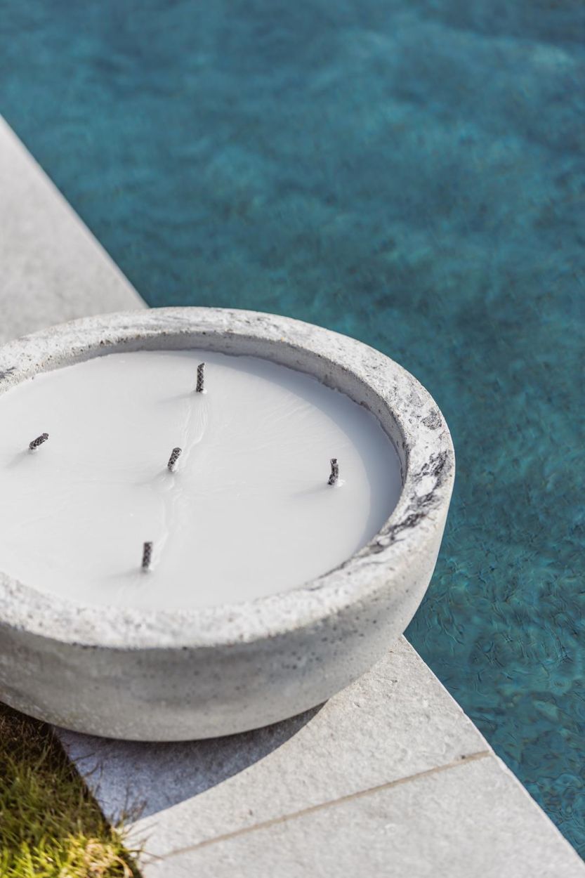 Coulée dans un mélange de cire naturelle et minérale, cette bougie est conçue pour résister à la chaleur. Son point de fusion élevé de 60 °C lui permet de garder sa forme, même sous un soleil intense.