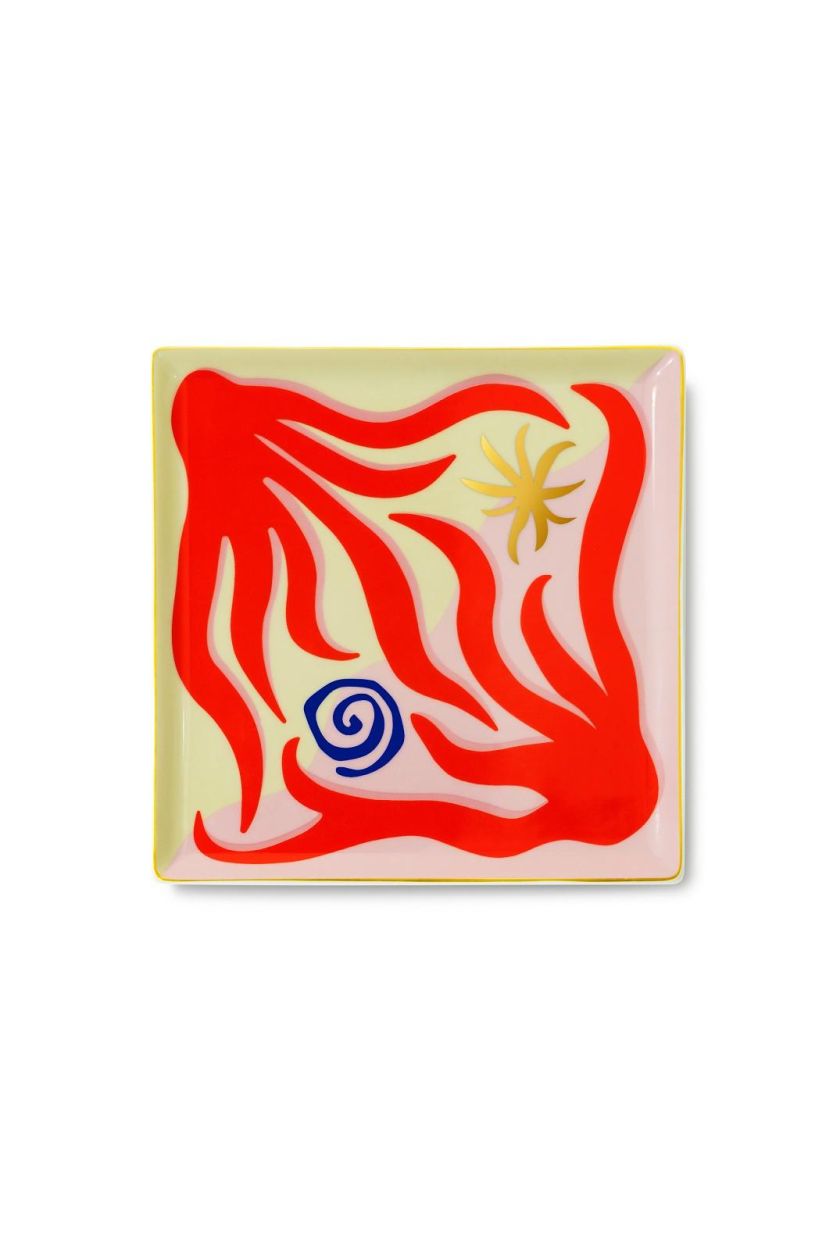 Un plateau décoratif aux accents méditerranéens. Inspiré par la côte Amalfitaine, son design associe des couleurs vibrantes et de délicats détails dorés rappelant coraux et coquillages.