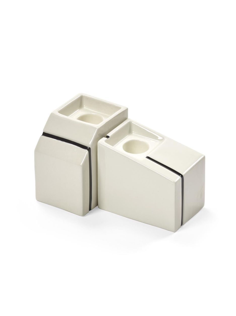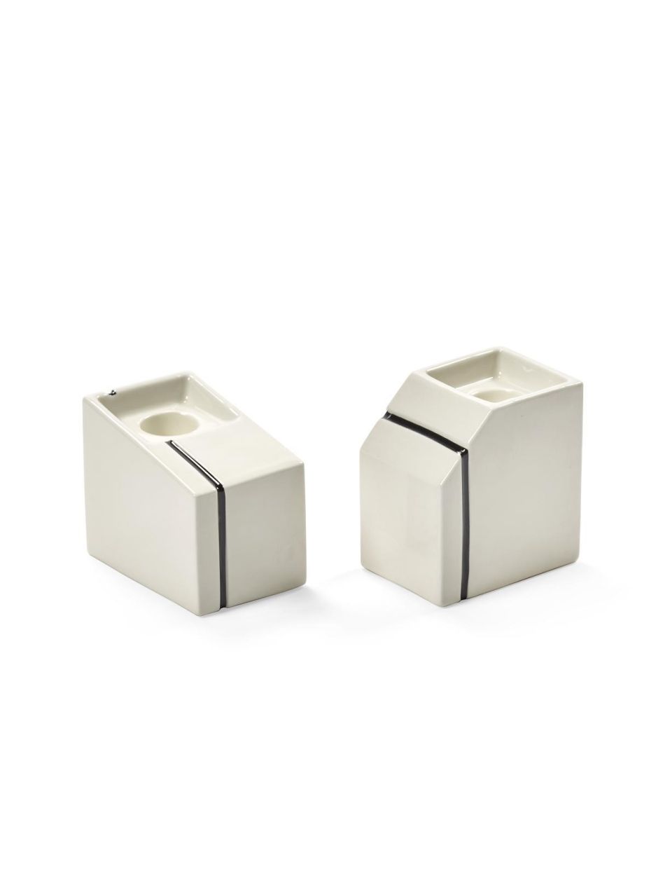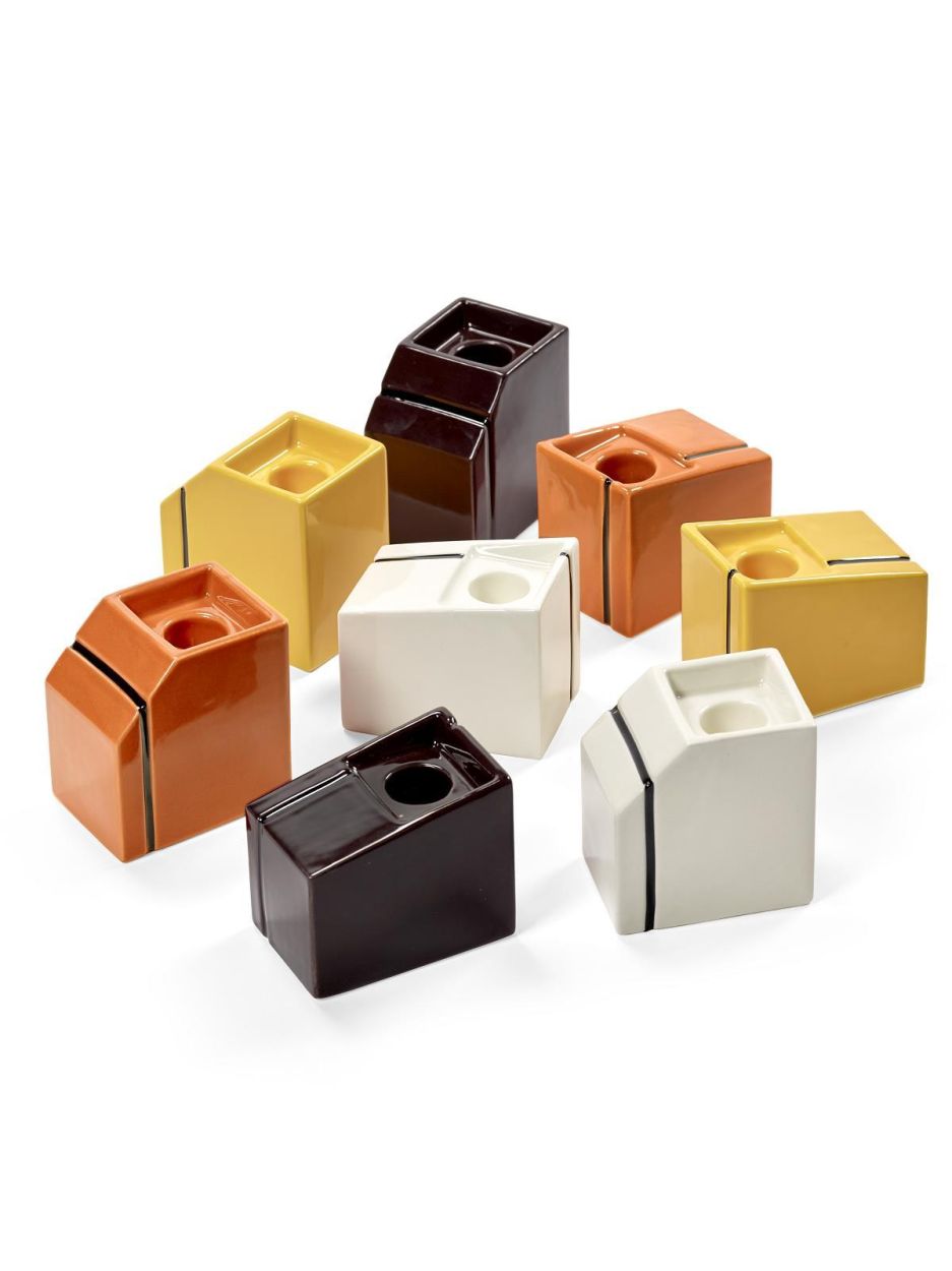 Silos est une collection remarquable de chandeliers (ou petits vases), née de la collaboration entre Serax et la marque de mode italienne Plan C. Les formes s’inspirent des silos industriels, mais sont réinterprétées avec une touche ludique grâce à la douceur de la porcelaine et à des couleurs vives. Chaque objet évoque une mini-sculpture : graphique, audacieux, et empreint d’un clin d’œil assumé au design vintage. Silos n’apporte pas seulement de la lumière ou des fleurs à votre intérieur, mais surtout du caractère et de la personnalité.