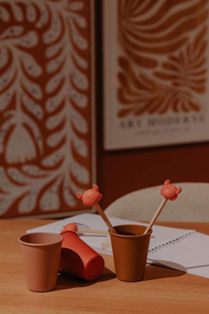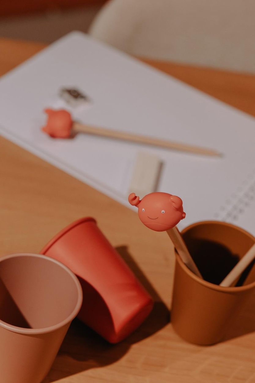 Theo est un crayon ludique qui rend le dessin et l’écriture encore plus amusants. Avec sa couleur corail et ses petites pinces, il apporte une touche originale dans la trousse.