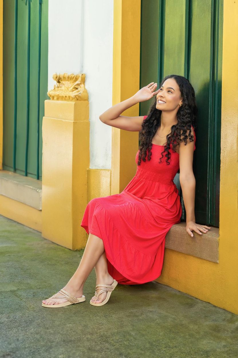 Une sandale confortable avec une touche dorée discrète. Facile à porter au quotidien, elle s’adapte aussi à des occasions un peu plus habillées. Légère, souple et facile à assortir.