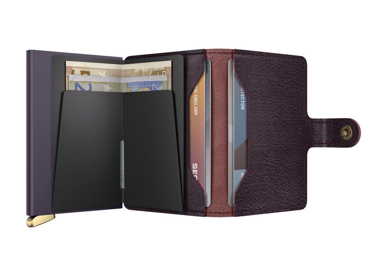 Petit par sa taille et étonnamment grand par sa capacité de stockage, le Miniwallet combine le meilleur des deux mondes. L'extérieur peut contenir des billets de banque, des reçus et des cartes, tandis que le Cardprotector en aluminium vous permet de faire sortir les cartes d'un simple mouvement et les protège contre pliures, cassures et les communications sans fil non désirées.