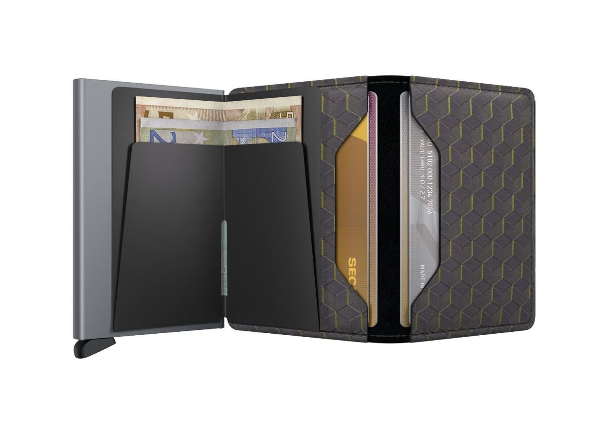 Grâce à son profil fin, le Slimwallet se glisse parfaitement dans toutes les poches. L'extérieur est découpé très large pour contenir des cartes, des billets et des reçus. Le mécanisme du Cardprotector vous permet de sortir les cartes d'un simple mouvement, tandis que l'aluminium protège vos cartes de la pliure, de la cassure et des communications sans fil non désirées.