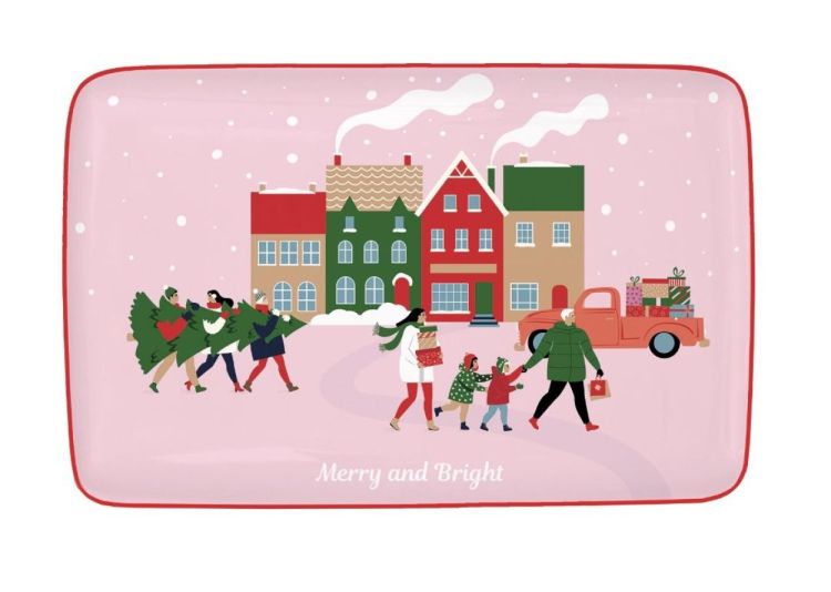 Noël en porcelaine, avec une touche de peps. Ce petit plat rectangulaire (22 x 14 cm) est idéal pour quelques biscuits, chocolats, amuse-bouches ou même un petit dessert de fête.