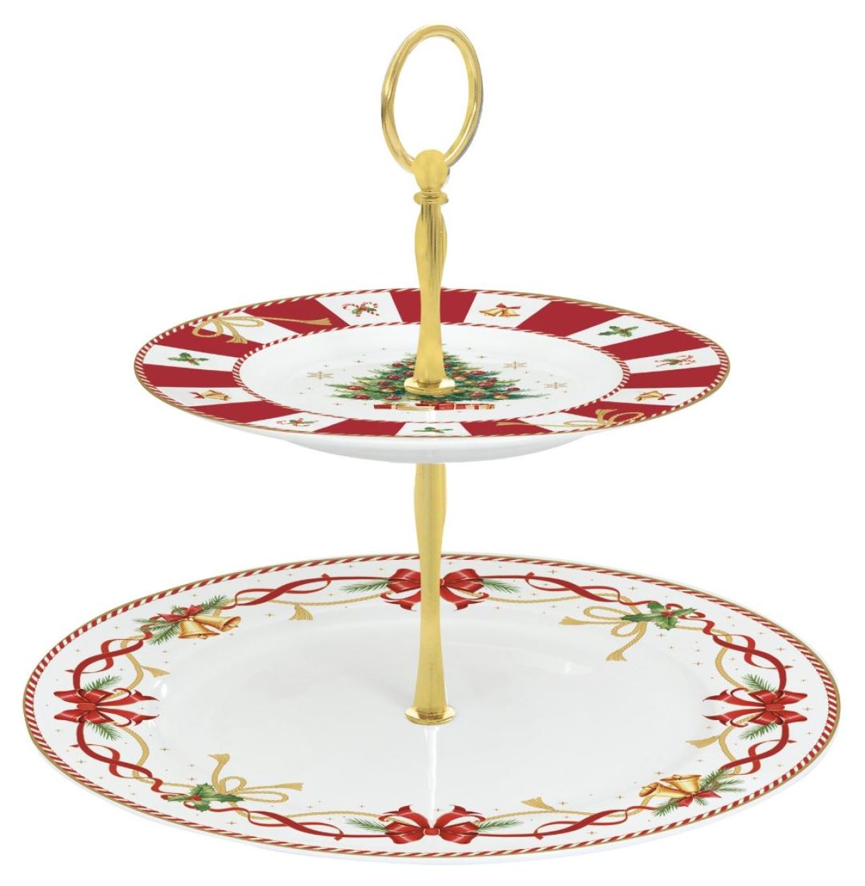 Élégant et festif : ce présentoir en porcelaine à 2 étages (Ø 19 et Ø 27 cm) est idéal pour biscuits, mignardises, pralines ou amuse-bouches.
