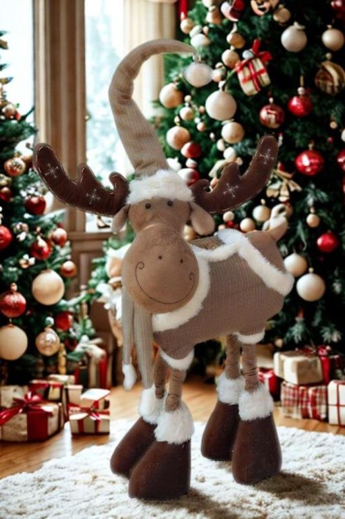 Dans un brun clair chaleureux et coiffé d’un joyeux bonnet de Noël, cet élan debout signé La Galleria est une présence accueillante et impressionnante qui s’intègre parfaitement à toute ambiance de fête.