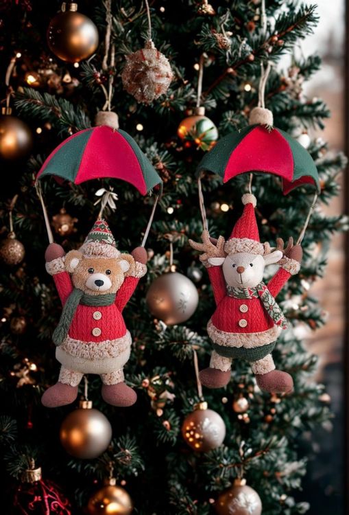 Prêt à atterrir dans ton sapin – cet ours ou élan de Noël de 43 cm avec parachute signé La Galleria est une suspension joyeuse qui apporte aussi une touche festive ailleurs.