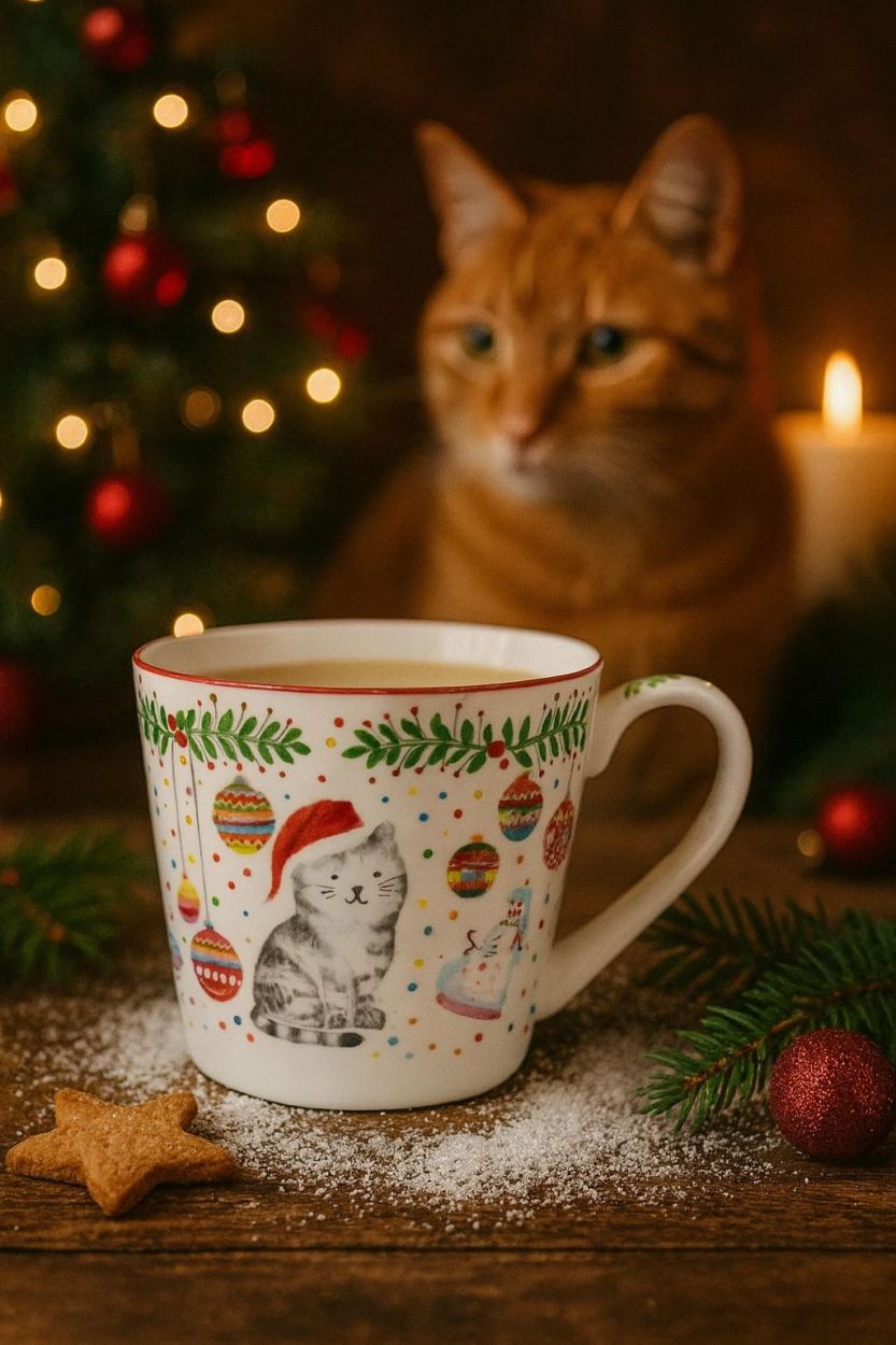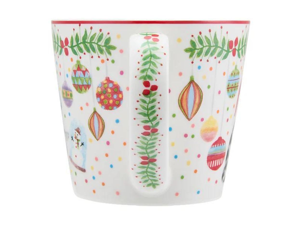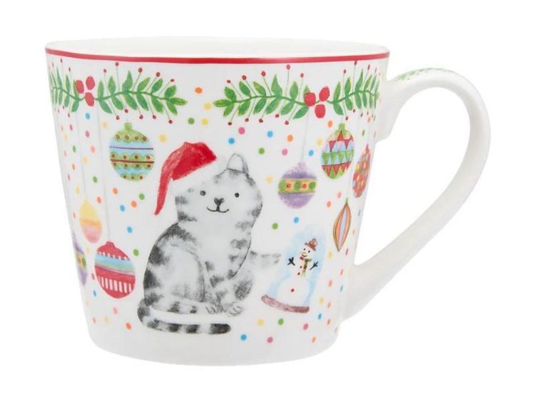 Cette joyeuse tasse Jolly Joy Joy Cat apportera une touche de bonne humeur à toute réunion festive. Ce mug pétillant présente un design coloré aux motifs de Noël traditionnels, avec une apparition spéciale de votre compagnon à quatre pattes préféré. Fabriquée en porcelaine de haute qualité avec une forme évasée, elle est joliment finie avec des détails décoratifs à l'intérieur et sur la poignée. Pleine de couleur et de gaieté, c'est l'ajout parfait à votre table de fête.