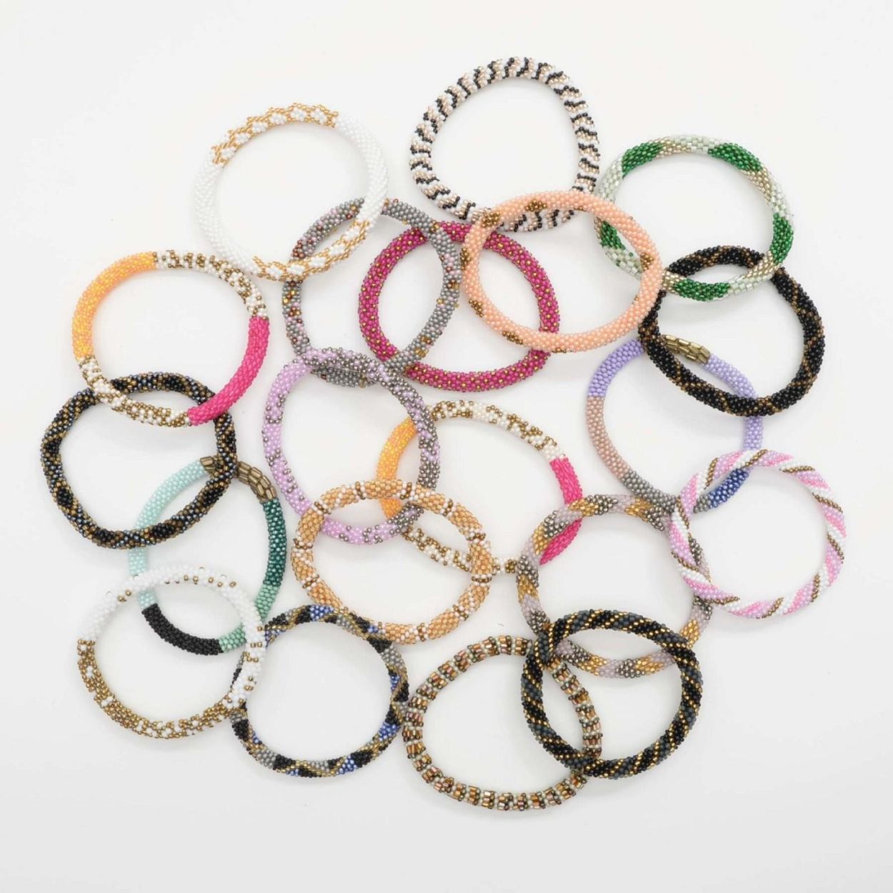 Le bracelet Anju est crocheté à la main par des femmes au Népal, à partir de délicates perles de verre provenant du Japon et de la République tchèque. Chaque bracelet reflète un savoir-faire artisanal et un travail minutieux.