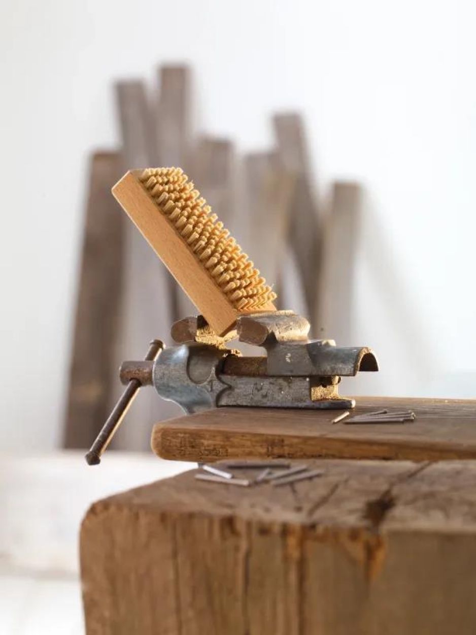 Brosse à ongles en bois de hêtre avec des poils durs. Dimensions (l x L): 9,5 x 3,6 cm.