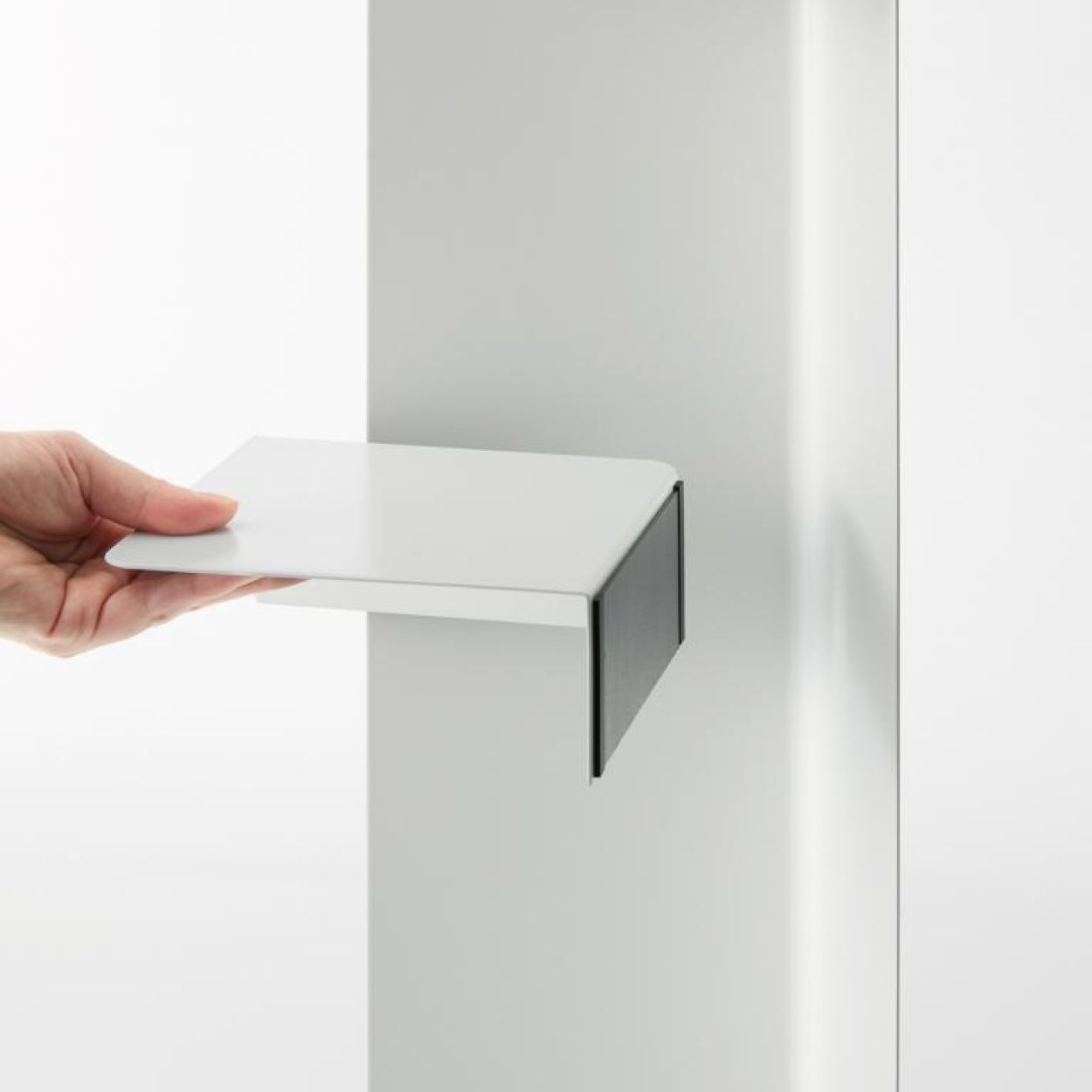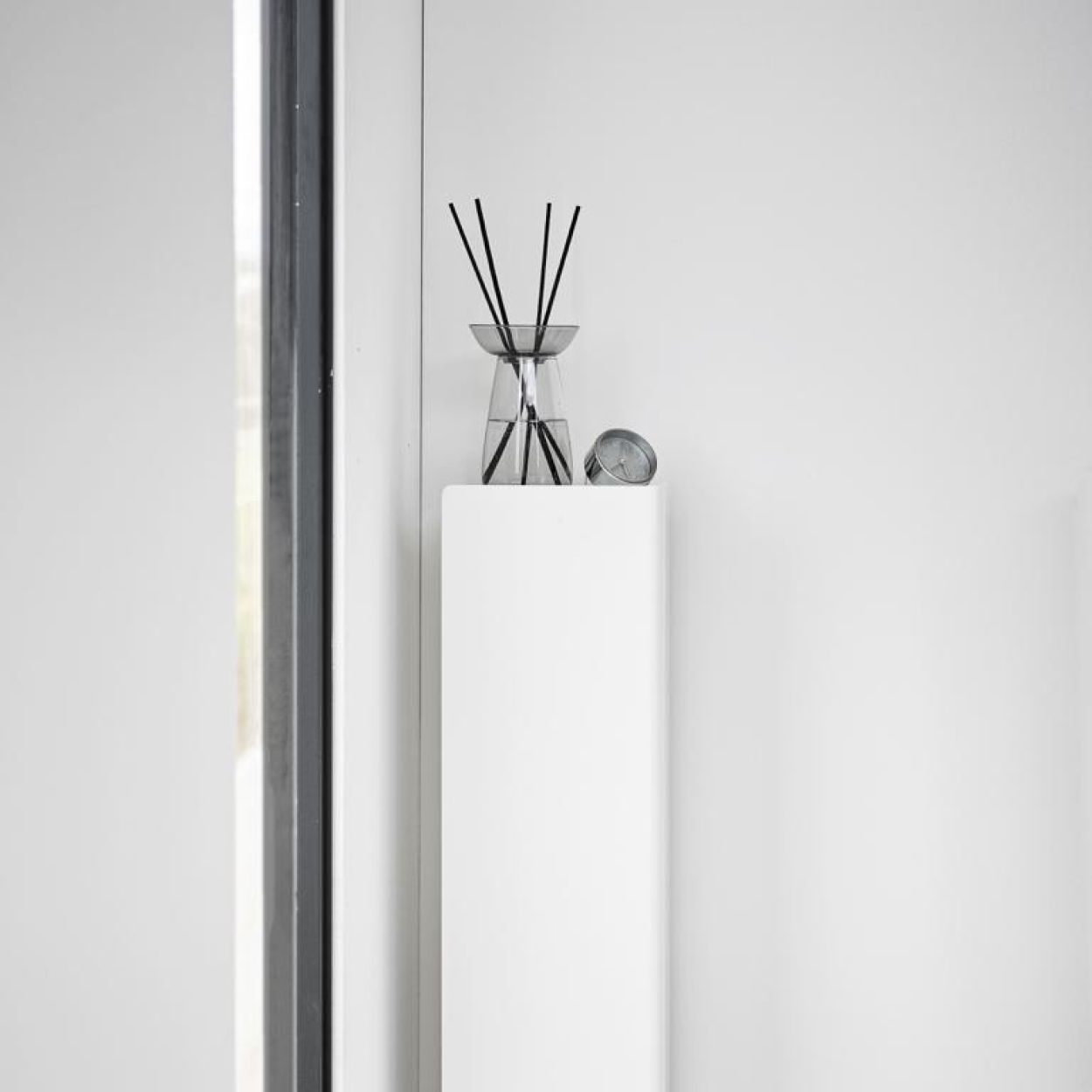 Minimaliste et fonctionnel. Ce porte-papier toilette aux côtés fermés cache élégamment rouleaux et produits d’entretien. À l’intérieur, une étagère magnétique réglable en hauteur. Le dessus accueille de petits objets comme un téléphone ou une plante. Grâce aux roulettes dissimulées, le meuble se déplace facilement et permet un nettoyage aisé du sol.
