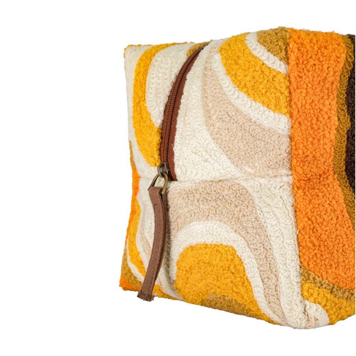 Gemaakt van 100% katoen met een prachtig geborduurd motief, waarin ambacht en modern design samenkomen. De volledige nylon voering beschermt de inhoud, terwijl de ritssluiting alles netjes afsluit.