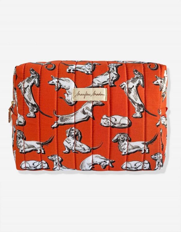 De Toilettas Teckels M van Marylène Madou is perfect voor het opbergen van make-up of kleine badkamerbenodigdheden. Deze exclusieve katoenen toilettas houdt je dagelijkse routine geordend en voegt een speels tintje toe aan je badkamer met de charmante ‘Teckels’ print. Gemaakt van stevig gewatteerd katoen met een natuurlijke uitstraling en afgewerkt met een goudkleurige rits. De volledig waterdichte voering zorgt voor extra duurzaamheid. Voor langdurig plezier wordt handwas aanbevolen.