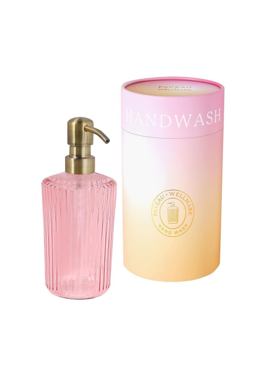 De navulbare glazen fles draagt het iconische Paveau-design, gecombineerd met de luxe messing pomp van Wellmark. Binnenin vind je een zachte, vegan handzeep die lief is voor je huid én het milieu.