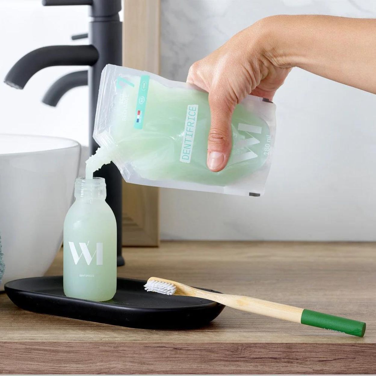 Geschikt voor het hele gezin vanaf 7 jaar. De tandpasta zit in een herbruikbare glazen flacon van versterkt glas, bestand tegen vallen en ontworpen om keer op keer bij te vullen. Verantwoord voor je mond, je badkamer én de planeet.