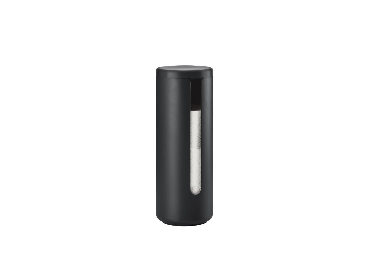 De Ume wc-rol opberger van Zone Denmark is een stijlvolle en praktische oplossing voor extra toiletrollen. De slanke, cilindervormige houder biedt ruimte aan drie rollen en past perfect in elke badkamer. Dankzij de verzwaarde basis staat hij stevig op de vloer, waar je hem ook plaatst.