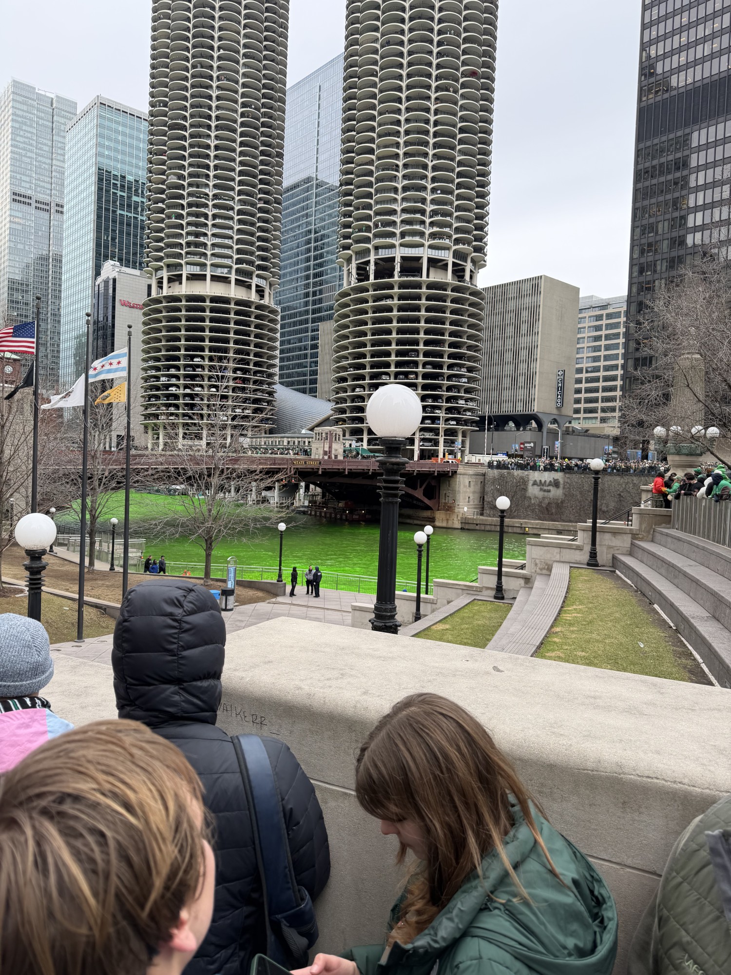 Onze laatste dag in Chicago viel meteen samen met een bijzonder moment: St. Patrick’s Day.