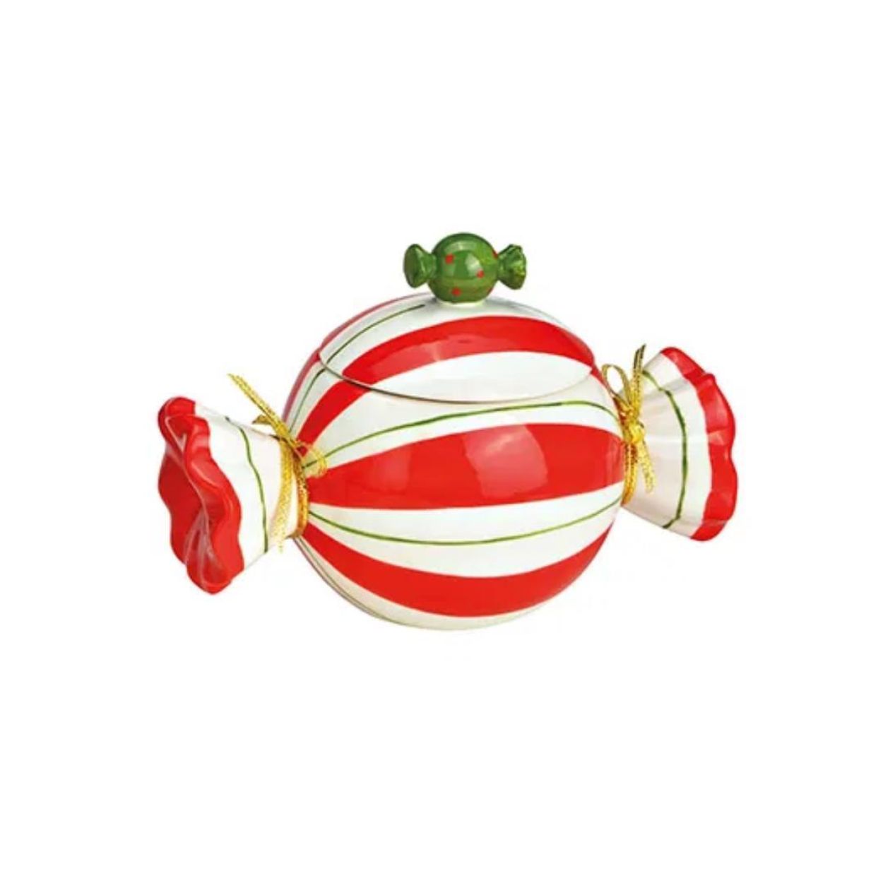 Keramische pot in de vorm van een groot kerstzuurtje, met een snoepje bovenop als handvat. Voor al je lekkers of kleine verrassingen.