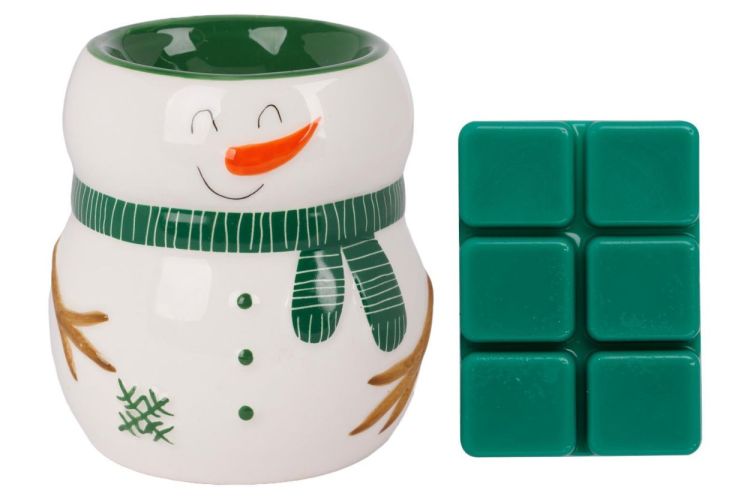 Een feestelijke giftset die sfeer en geur samenbrengt. Plaats een theelichtje in de sneeuwmanhouder en leg een waxmelt bovenop. Terwijl het waxje smelt, vult je huis zich met een warme kerstgeur. Een gezellig cadeau voor de wintermaanden.