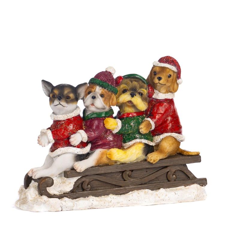 Vier trouwe viervoeters, elk met hun eigen kersttrui en muts – klaar om jouw feesttafel of vensterbank te vullen met warmte en vrolijkheid. Een beeldje vol charme, karakter en kerstgevoel.
