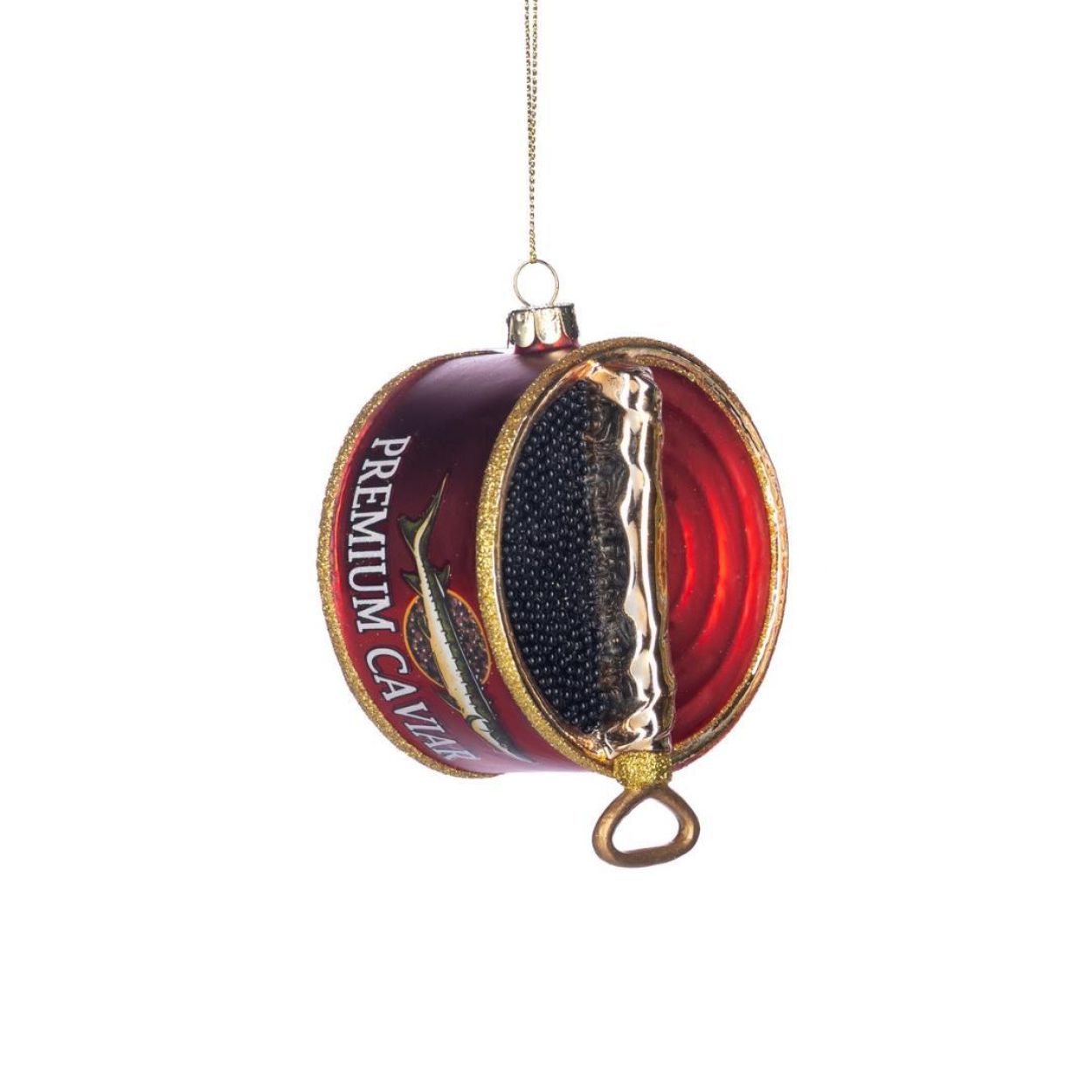 Een kerstbal voor de liefhebber van luxe met een knipoog. Deze glanzende pot kaviaar, mondgeblazen en handgedecoreerd, geeft jouw boom een tikje decadentie – met glitter, glans en een flinke schep humor.