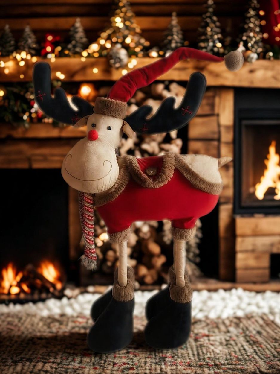 Gekleed in een kersttenue van velvet rood en met zijn imposante formaat is deze staande eland van La Galleria een stijlvolle blikvanger die direct kerstsfeer brengt.