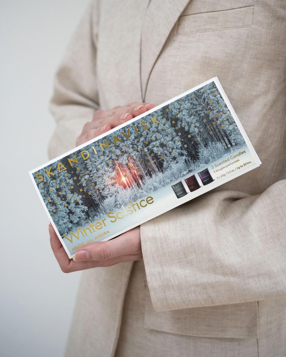 De Winter Solstice-set is een perfecte introductie tot Skandinavisk of een verfijnd cadeau voor de feestdagen. De kaarsen zijn vegan, dierproefvrij, gegoten in deels gerecycled glas en verpakt in FSC-gecertificeerd karton, gekleurd met natuurlijke pigmenten.