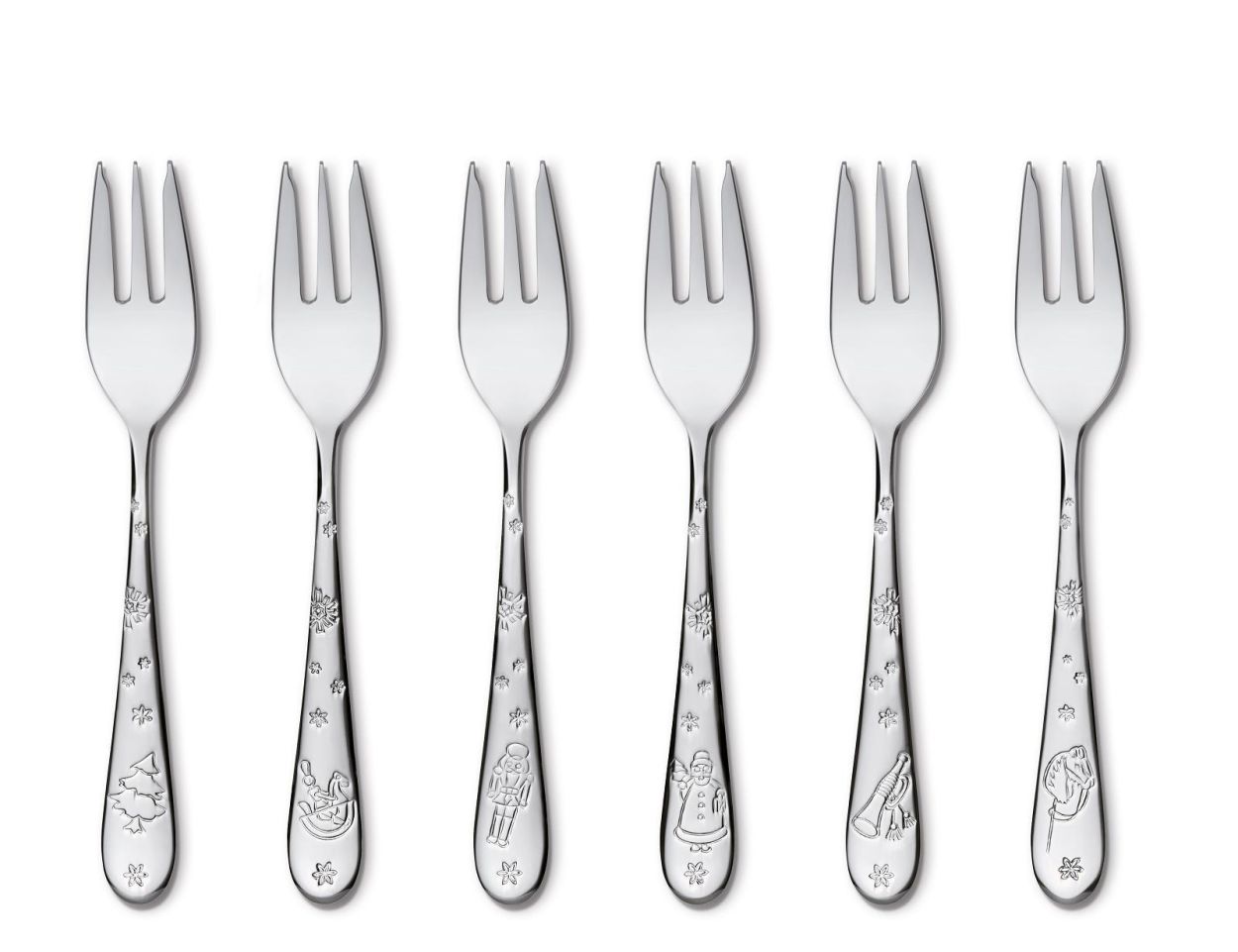 Voor de mooiste taarten én de fijnste momenten. Deze set van zes taartvorkjes is versierd met subtiele Toy’s Delight details in het handvat – een feestelijk accent bij elke zoete traktatie. Perfect voor kerstgebak, desserts of gewoon een doordeweeks stukje plezier.