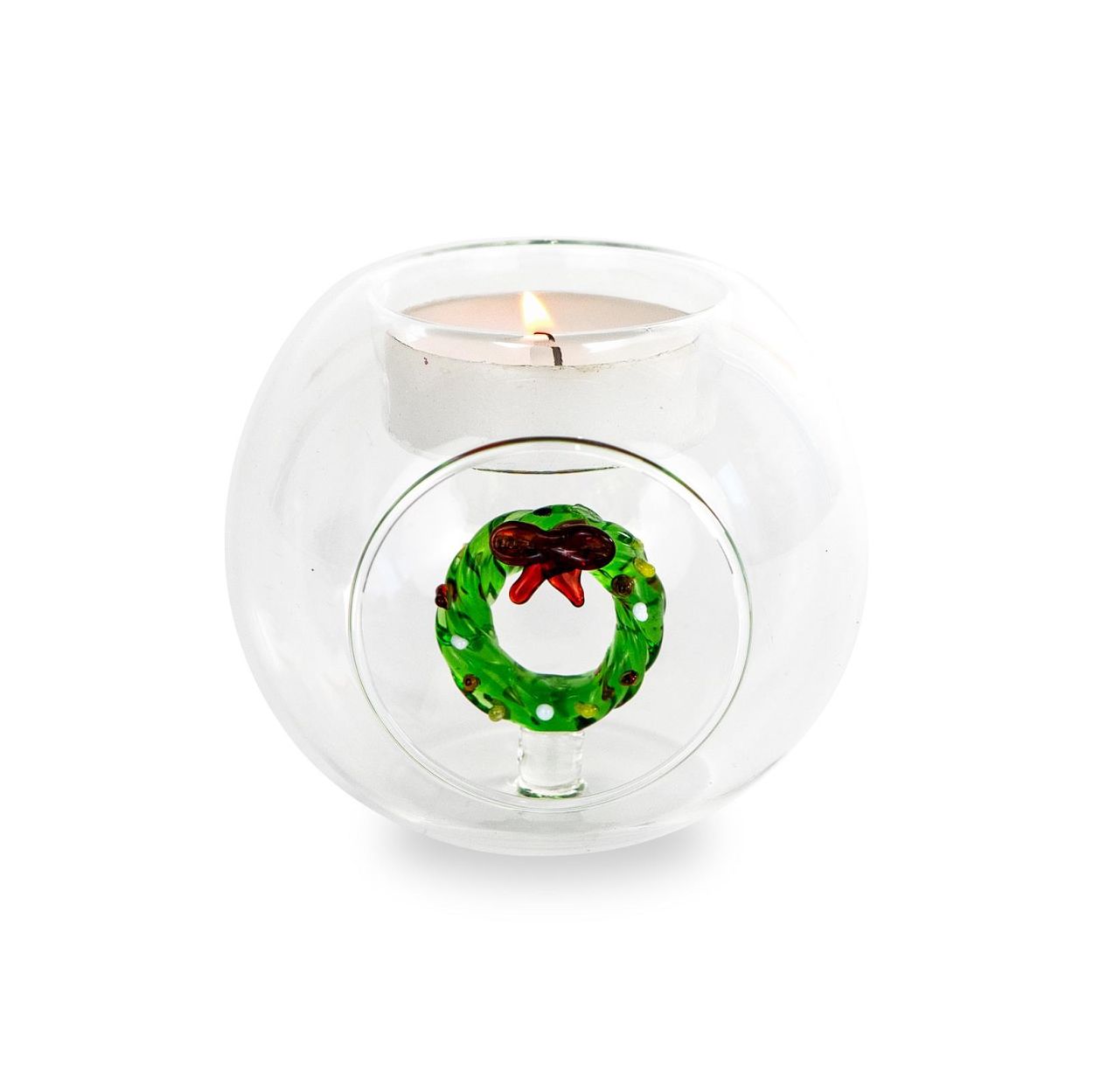 Deze theelichthouder van borosilicaatglas is met de hand versierd met een ambachtelijk kerstdecor, gemaakt van mondgeblazen glas. Perfect voor de feestdagen, maar ook daarna een blikvanger in huis.
