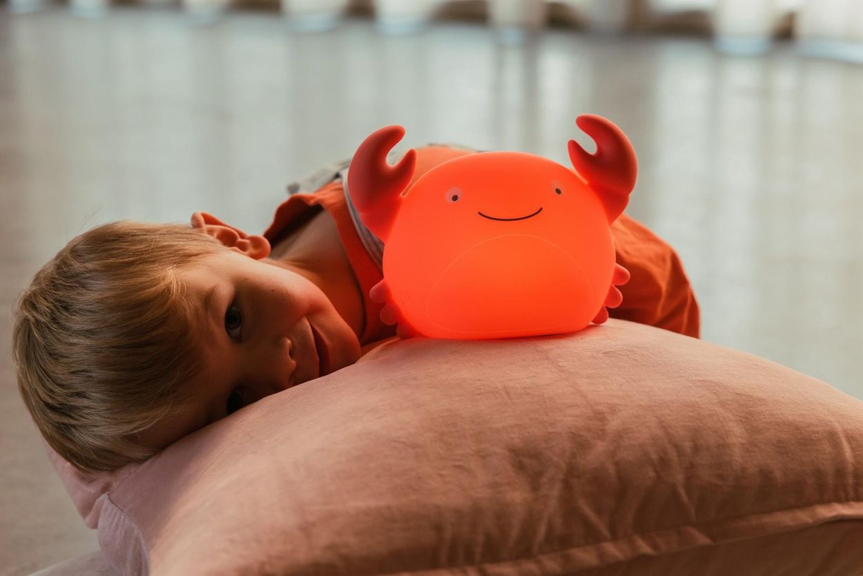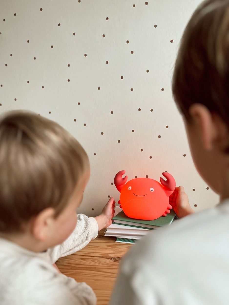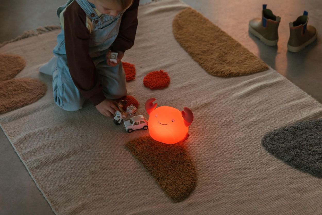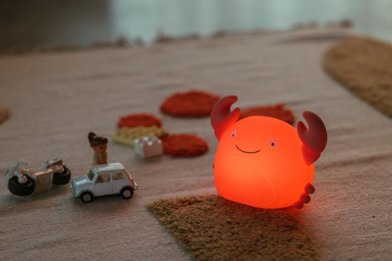 Theo is een zacht siliconen nachtlampje dat zorgt voor een rustige sfeer in de kinderkamer. Zijn warme gloed helpt om ontspannen in slaap te vallen, zonder te fel te zijn.