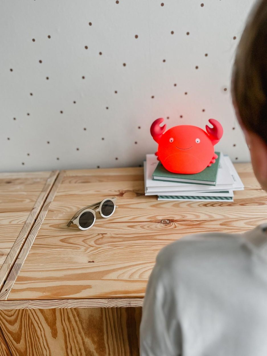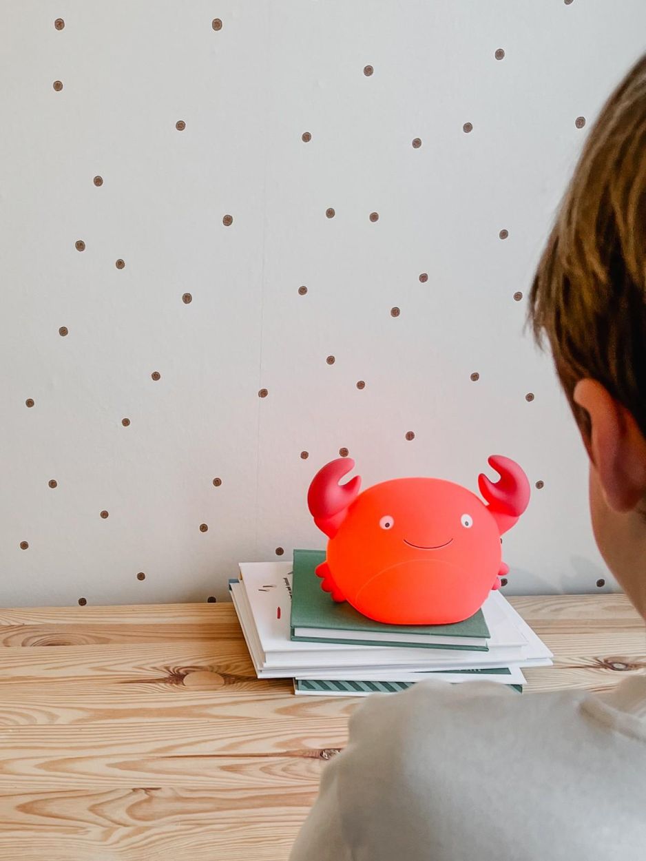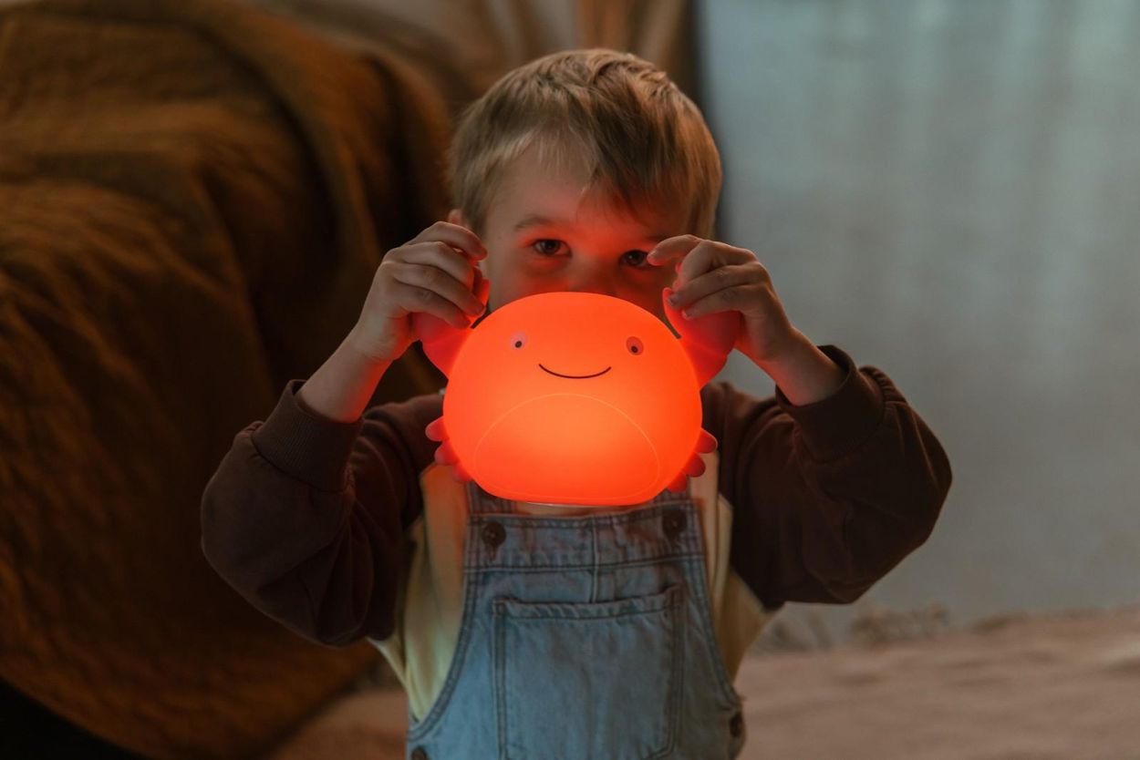 Theo is een zacht siliconen nachtlampje dat zorgt voor een rustige sfeer in de kinderkamer. Zijn warme gloed helpt om ontspannen in slaap te vallen, zonder te fel te zijn.